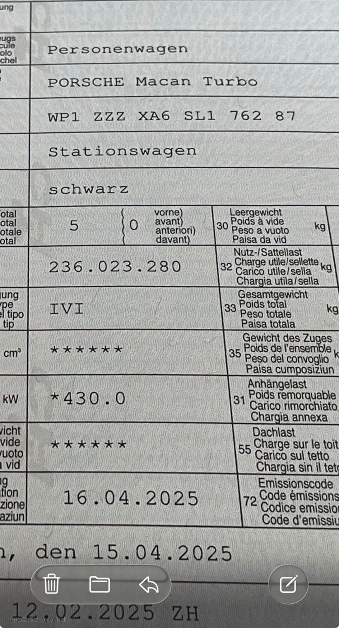 | VIN | WP1XXX |