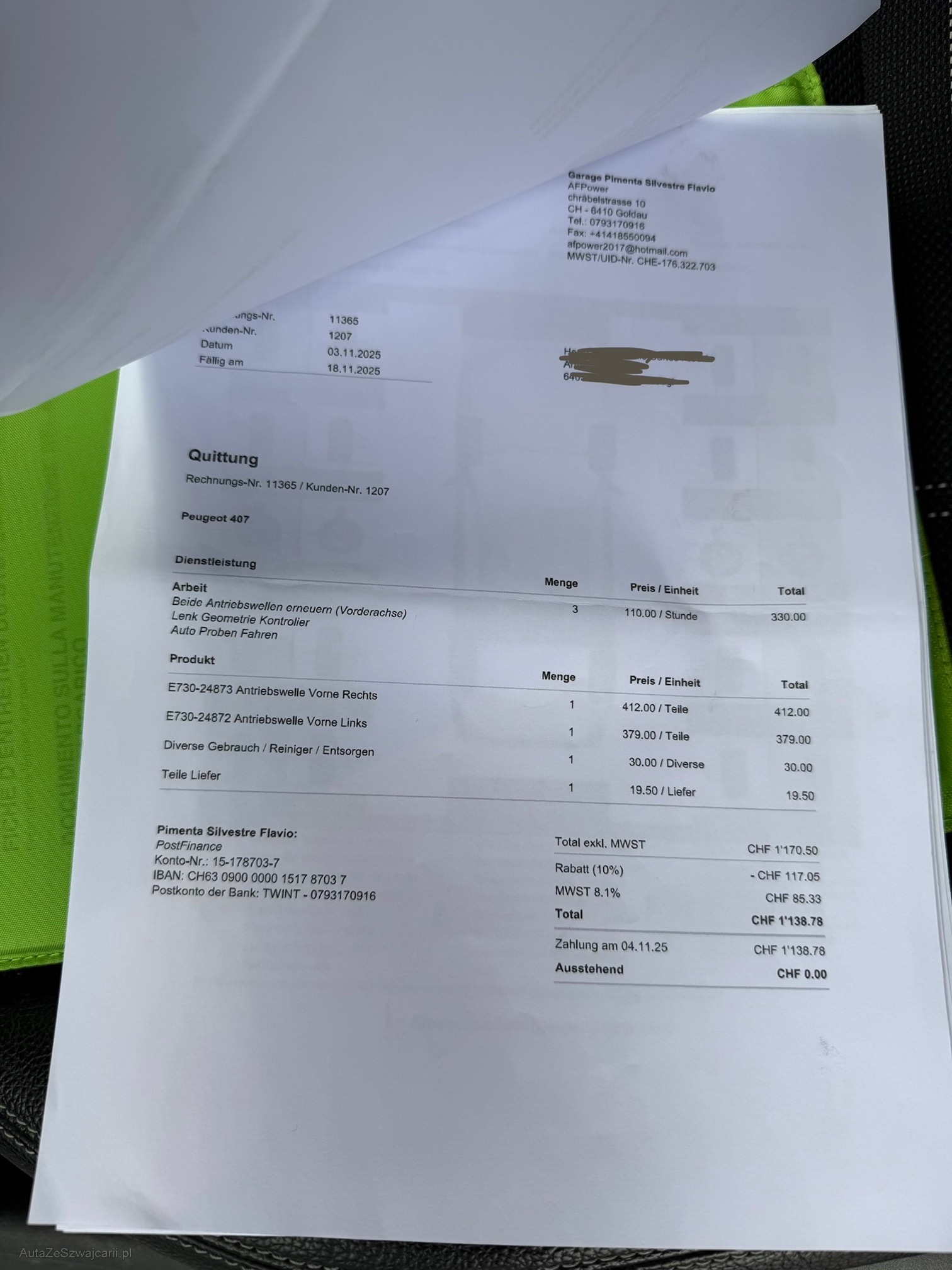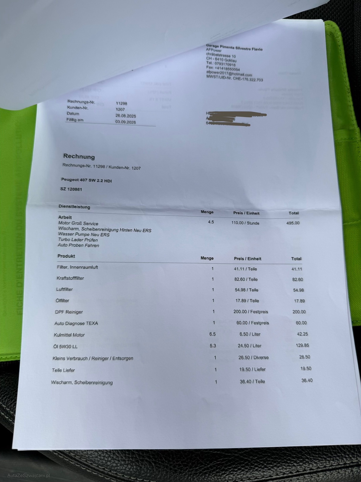 | Kommentar | Fahrzeug wie auf den Bilder zu sehen! Fronthaupe hat Hagelschaden Spuren! Servicegepflegt, siehe Rechnungen. Zanriemen & Wasserpumpe ersetzt und vieles mehr. Neuer Dieselpartikelfilter. Fahrzeug läuft und hat noch gültige MFK! Fahrzeug wurde nicht kontrolliert und keiner Expertise vorgenommen, mögliches Eintauschafahrzeug auf eigenes Risiko ab Platz ohne Garantie. Besichtigung gerne möglich! Keine Nachverhandlungen nach Gebot. |
