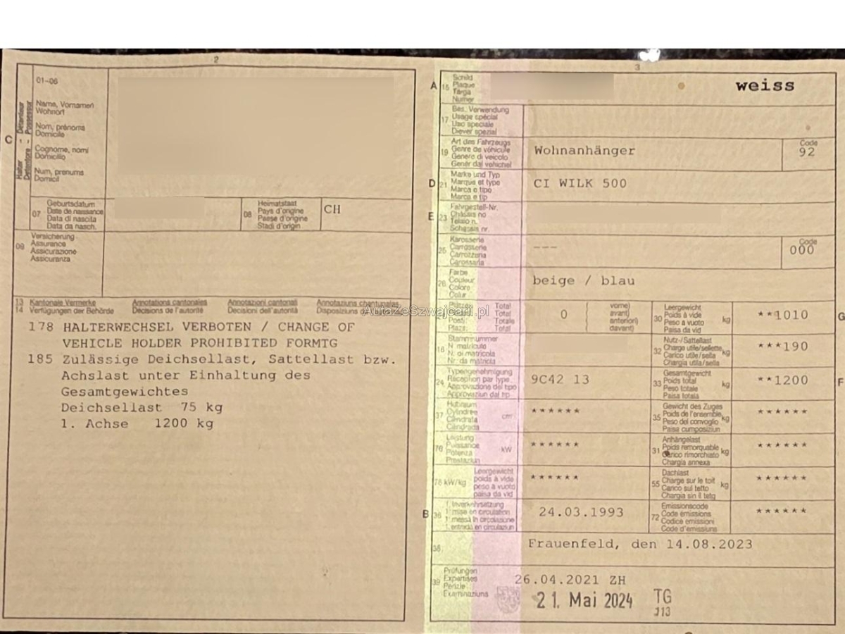 | Fahrzeugausweis | Vorhanden |