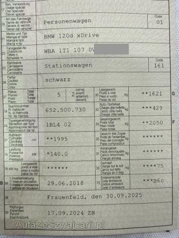 | Condition_and_Equipment | Demontage Persönliche Gegenstände oder Ladegut im Fahrzeug werden entfernt. Zustand Fahrzeug muss transportiert werden (Höhe und Breite beachten). Fahrzeug ist fahrbar. Fahrzeug ist rollbar. Bereifung Fahrzeug wird mit Winterräder abgegeben. Zweiter Radsatz vorhanden Sonstiges Fahrzeugdokumente vorhanden. --- Heck Kofferboden eingedrückt. Heckklappe eingedrückt. Abgasanlage deformiert. Elektrik Risiko Steuergeräte. Sonstige Schäden Div.Carrosserie Teile sind leicht beschädigt. --- Serienaustattung Klimaautomatik inkl. Mikrofilter Fahrer und Beifahrer-Airbag Seitenairbag für Fahrer und Beifahrer Radio BMW Professional Reifendruck-Kontrollsystem RDC Elektrische Fensterheber Aussenspiegel elektrisch verstellbar Regensensor Dynamische Stabilitäts-Control DSC Lederlenkrad Bordcomputer Uni-Lackierung Multifunktions-Lenkrad Kopfairbags vorne + hinten Dynamische Traktions-Control DTC Dieselpartikelfilter Armauflage vorn verschiebbar Lenksäule mit Höhen- und Längseinstellung Rücksitzlehne asymmetrisch geteilt umklappbar Digital audio DAB-Tuner ABS Antiblockiersystem inklusive Bremsassistent Interieurleisten Satinsilber matt Auto Start Stopp Funktion Freisprecheinrichtung mit USB-Schnittstelle Keine Gewähr auf die Angaben der Serienausstattungen ConnectedDrive Services Remote Services BMW Service Plus 10 Jahre/ 100'000 km Sonderausstattung Diebstahlwarnanlage Sitzheizung für Fahrer und Beifahrer Innenspiegel automatisch abblendbar Durchladesystem Metallic-Lackierung Hochglanz Shadow-Line CD-Laufwerk Navigationssystem Professional HiFi-Lautsprechersystem Leder Dakota Park Distance Control PDC vorn und hinten Geschwindigkeitsregelung mit Bremsfunktion Fernlichtassistent Klimaautomat 2-Zonen inkl. Mikrofilter Instrumentenkombination/ erweitert Real Time Traffic Information Concierge Service M Leichtmetallräder Doppelspeiche 461 ferricgrey/ Mischber. Telefonie mit Wireless Charging Driving Assistant Pack Edition M Sport Shadow Ausstattung Winterräder MIT Stahl-Felgen. |