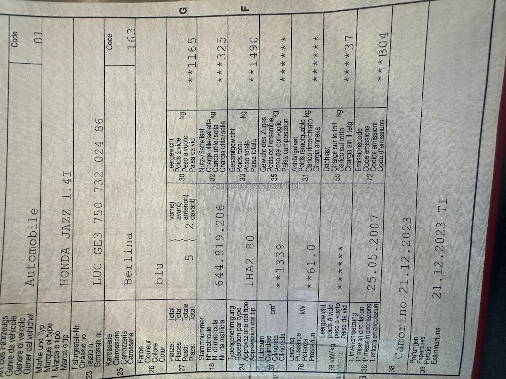 | Typ | Jazz 1.4i |