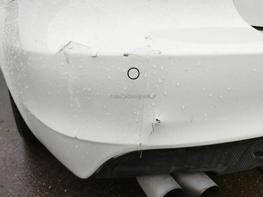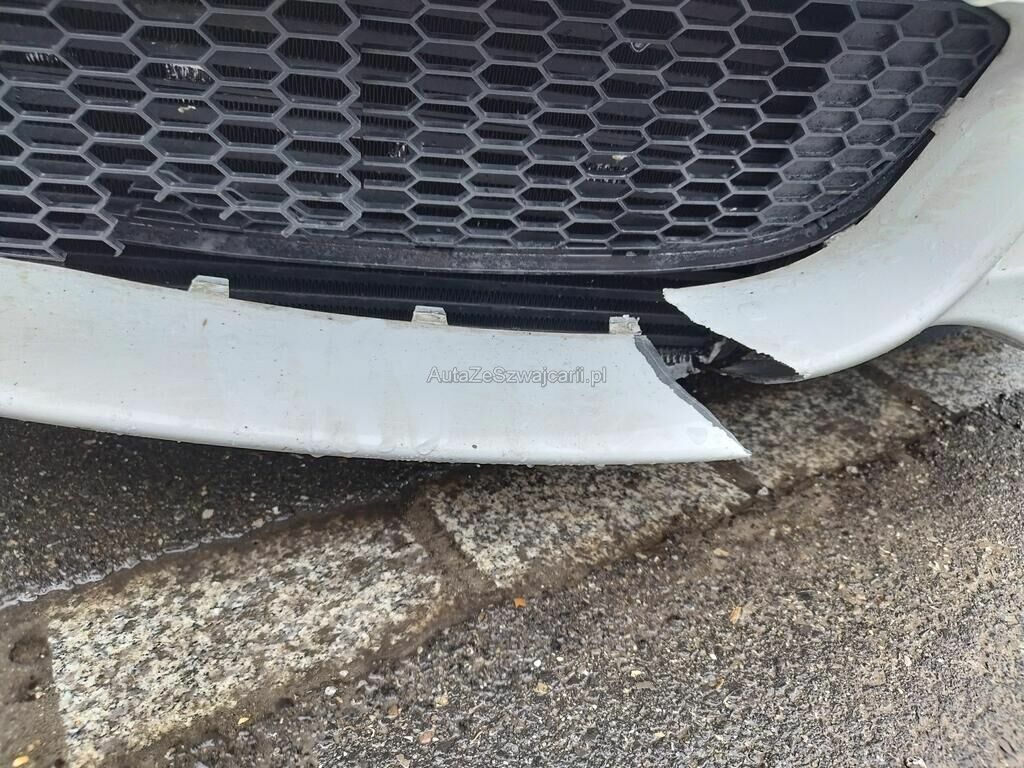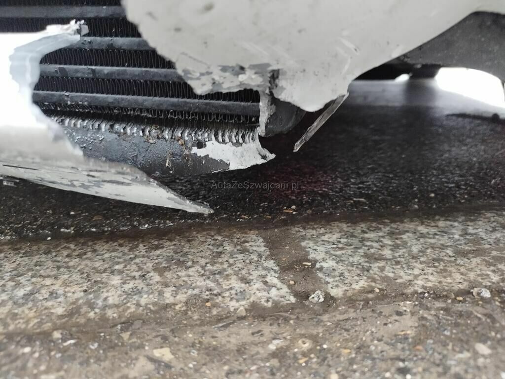 Die Stossstange vorne ist gerissen, diverse Anbauteile sind gerissen, der Kühler ist deformiert (Spezialkühler montiert), der Schlossträger ist gerissen, beide Felgen vorne haben Kratzspuren, der Reifen vorne links ist platt.