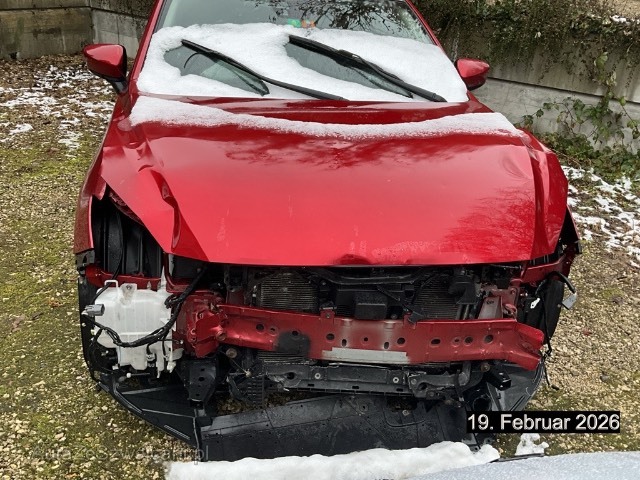 | Schadensbeschreibung | Frontschaden; Motorhaube, Querträger, Stossstange, alle Kühler, Schlossträger, Scheinwerfer, Kotflügel, Scheibenwaschbehälter eingedrückt und zerkratzt. Fahrer- und Beifahrer-Airbag und Gurtstraffer ausgelöst. / Vorbestandene Schäden: Seite rechts: Türe vorne und hinten und Schweller eingedrückt und zerkratzt. Fahrzeug hat Hagelschaden |