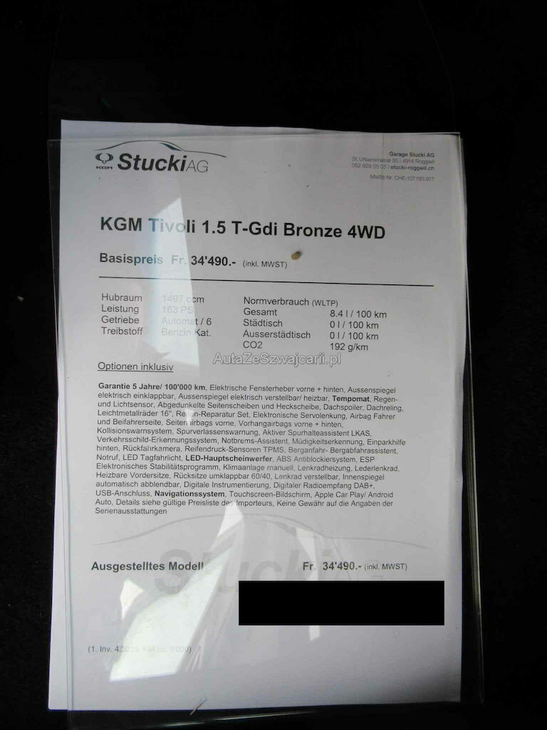 | Typ | TIVOLI 1.5TGDI BRONZE 4WD |
