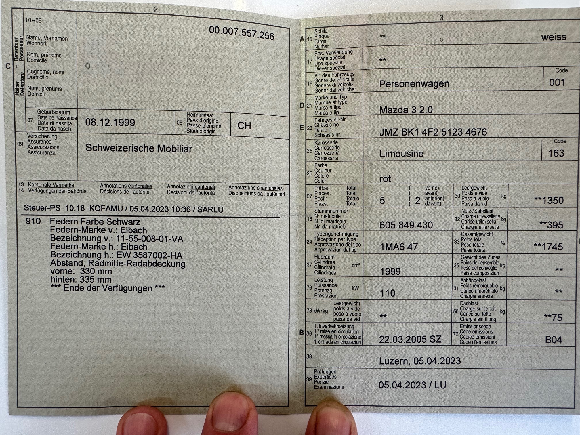 | Kommentar | Keine komplette technische Prüfung. Radlager machen geräusche. Leichter Hagelschaden auf Dach. |