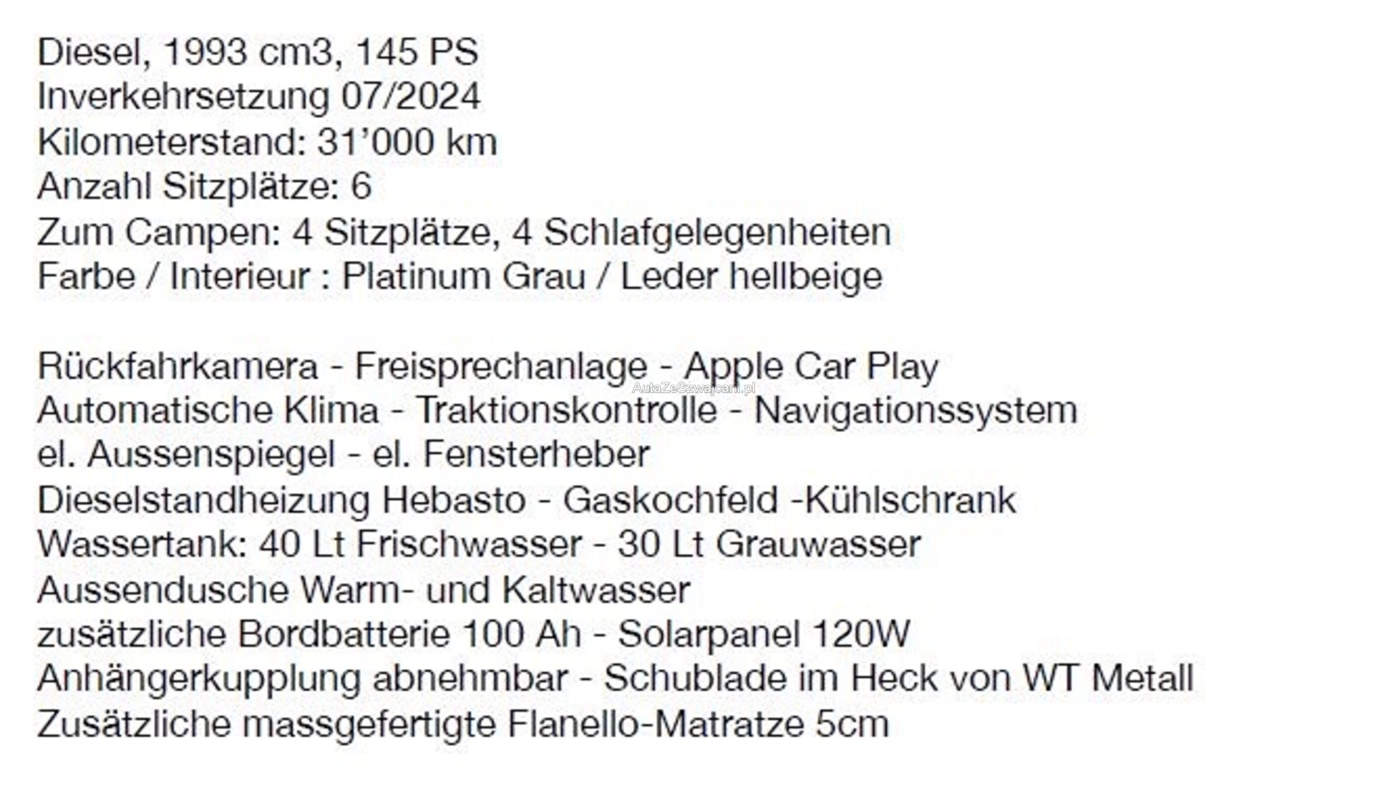 | Kommentar | Am Fahrzeug wurde kein Werkstatttest gemacht (für sichtbare oder nicht sichtbare Mängel wird nicht gehaftet). Wir testen und kontrollieren nicht alle Funktionen vom Fahrzeug. Das Risiko liegt somit vollumfänglich beim Käufer. Nachdem der Höchstbietende den Zuschlag erhalten hat, gibt es keine Nachverhandlung, auch wenn nicht deklarierte Mängel zum Vorschein kommen sollten. Ab Platz ohne Garantie, Wandelung und Minderung werden wegbedungen. |