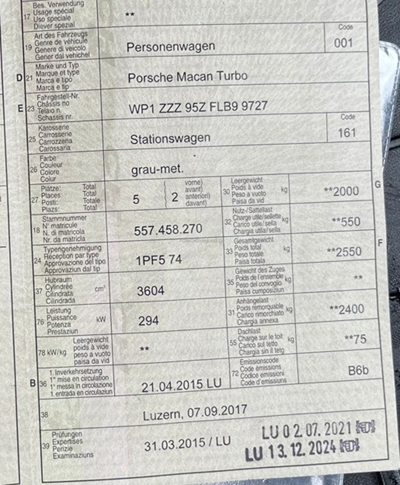 | Kommentar | Zustand siehe Fotos. 1 Vorbesitzer. Alle Services bei Porsche gemacht, zuletzt in 08/2025 bei 171'800 KM. Ausstattung siehe pdf. |