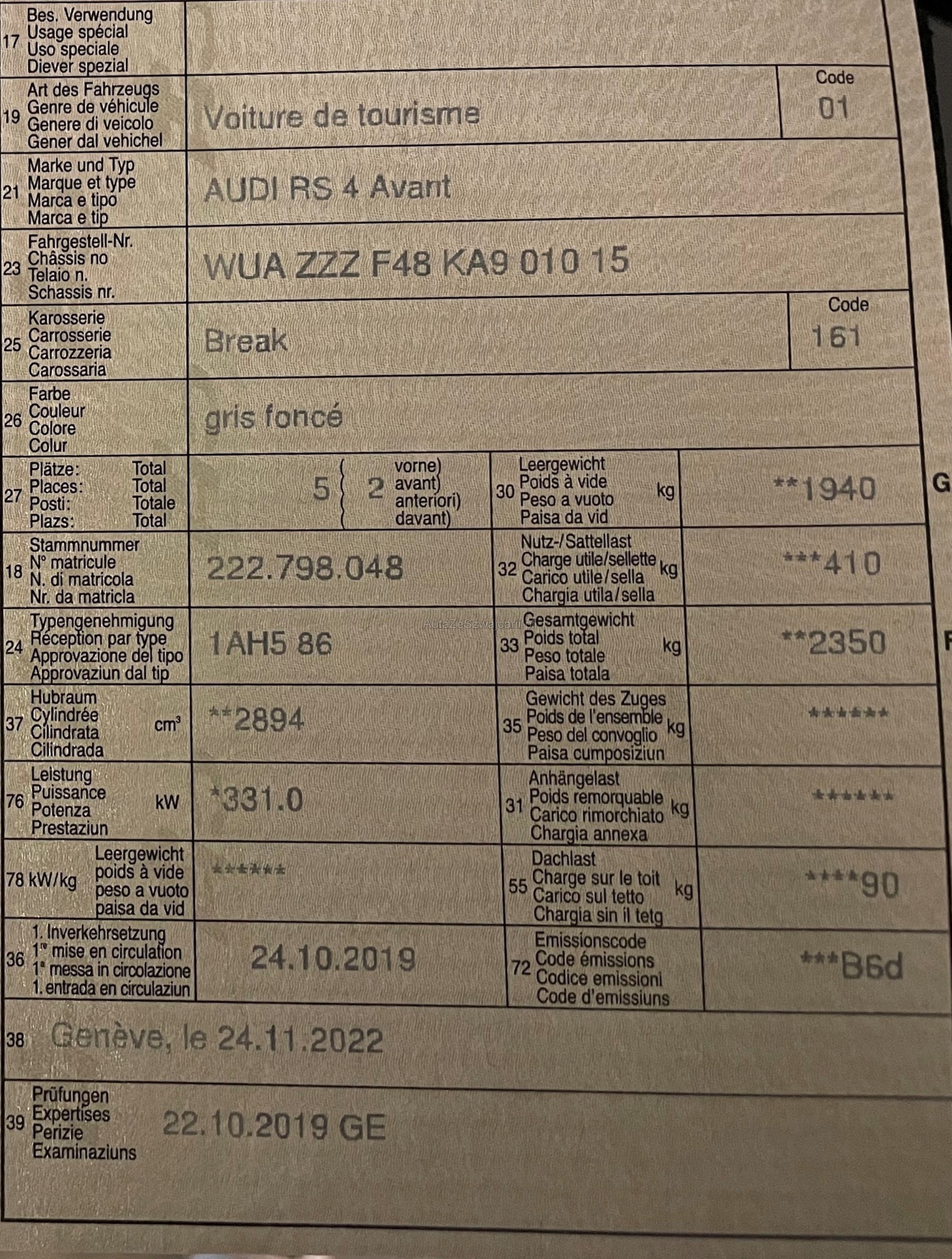 | VIN | WUAXXX |