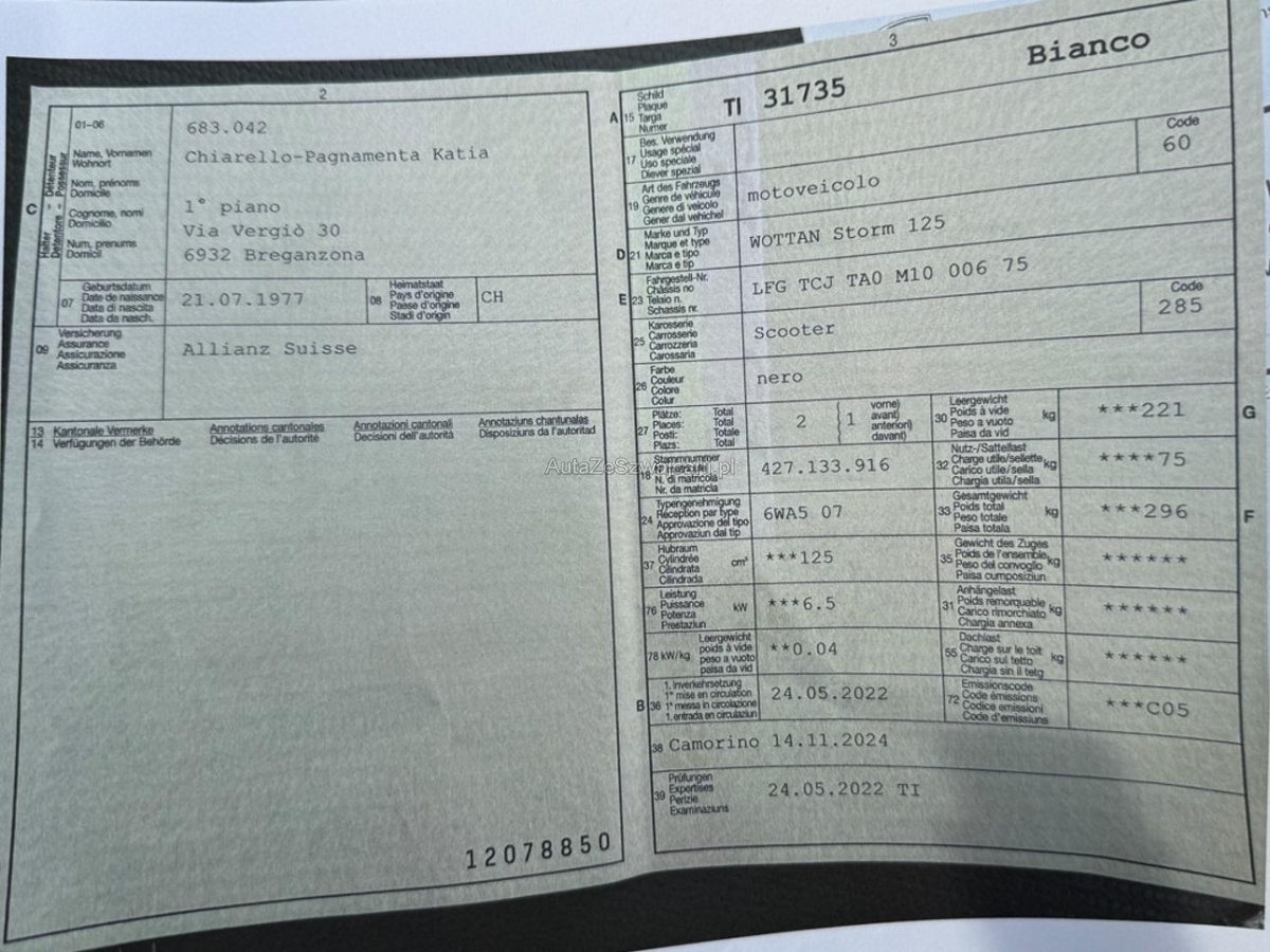 | Fahrzeugausweis | Vorhanden |