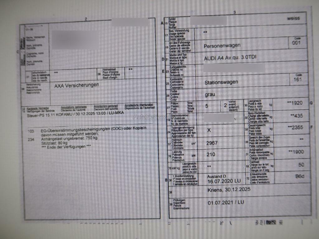 | Fahrzeugausweis | Fehlt |
