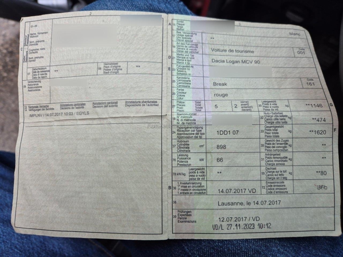 | Fahrzeugausweis | Vorhanden |