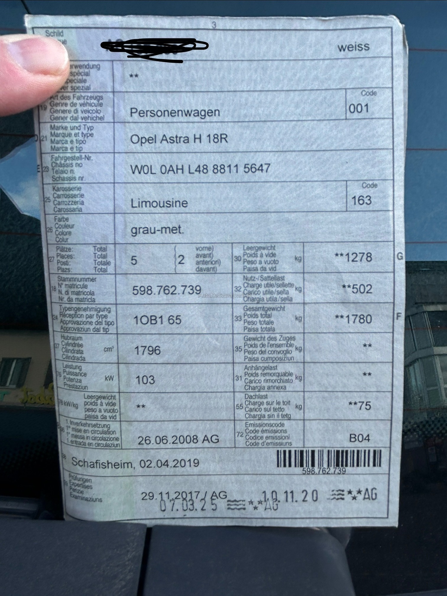 | Kommentar | Es wurde kein Werkstatt-Test durchgeführt. Fahrzeug hat diverse Gebrauchsspuren. |