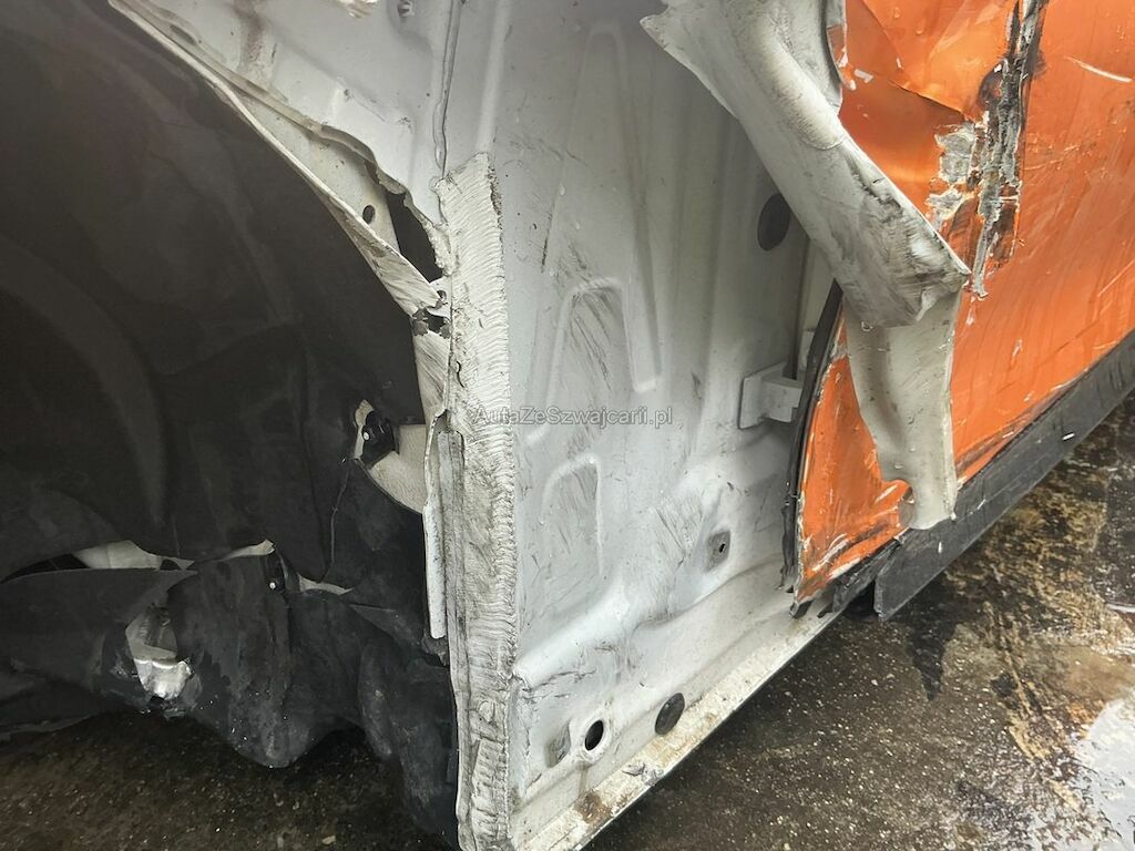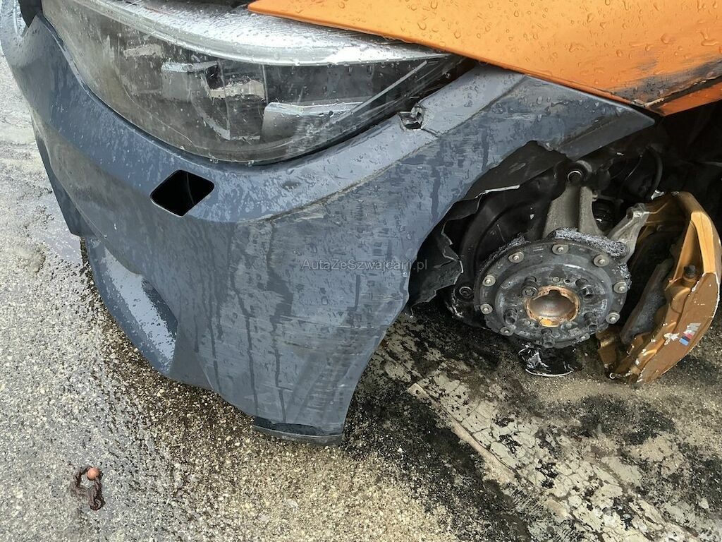 Jantes, pneu, frein avant gauche, pare-chocs, support, traverse, moulure, phare, radiateur, suspension, direction, aile, porte, montant A, aile arrière, pare-chocs arrière et transmission arrière endommagés. Ceintures de sécurité déclenchées