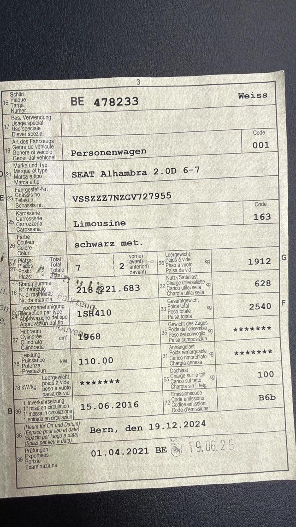 | Kommentar | Ab Platz ohne Nachverhandlungen Winterreifen 3-4mm Sommerreifen 5mm Letzte MFK 06/25 Bremsen alle in Ordnung Normale Gebrauchspuren für Alter und KM Keine Groben Beschädigungen |