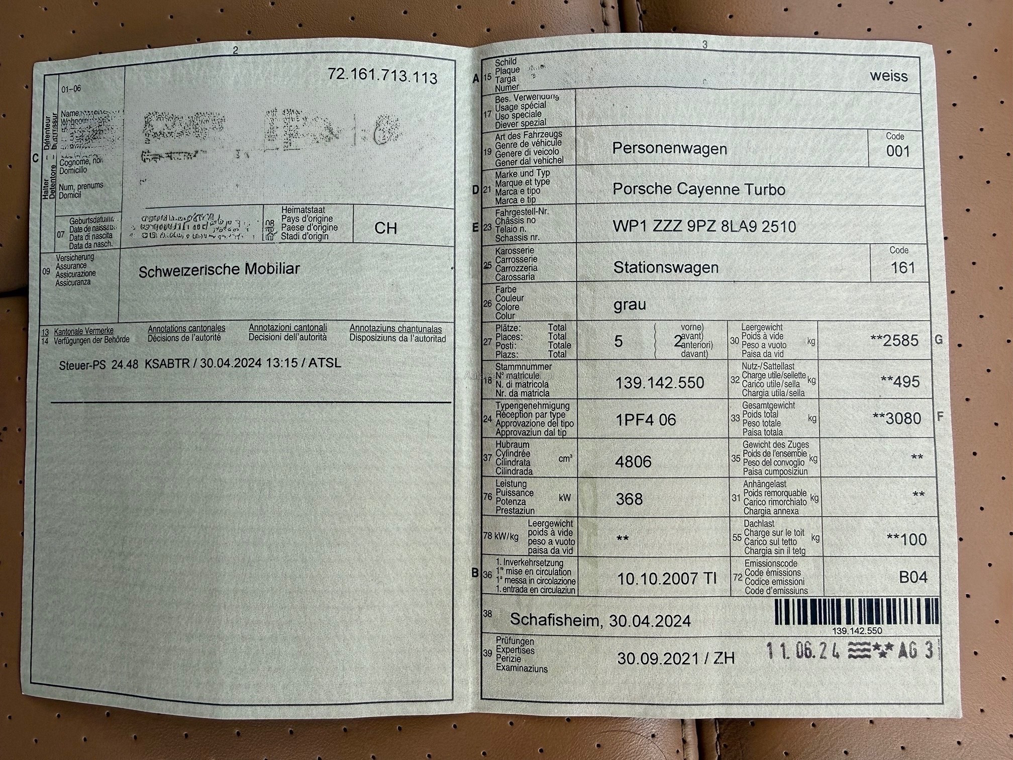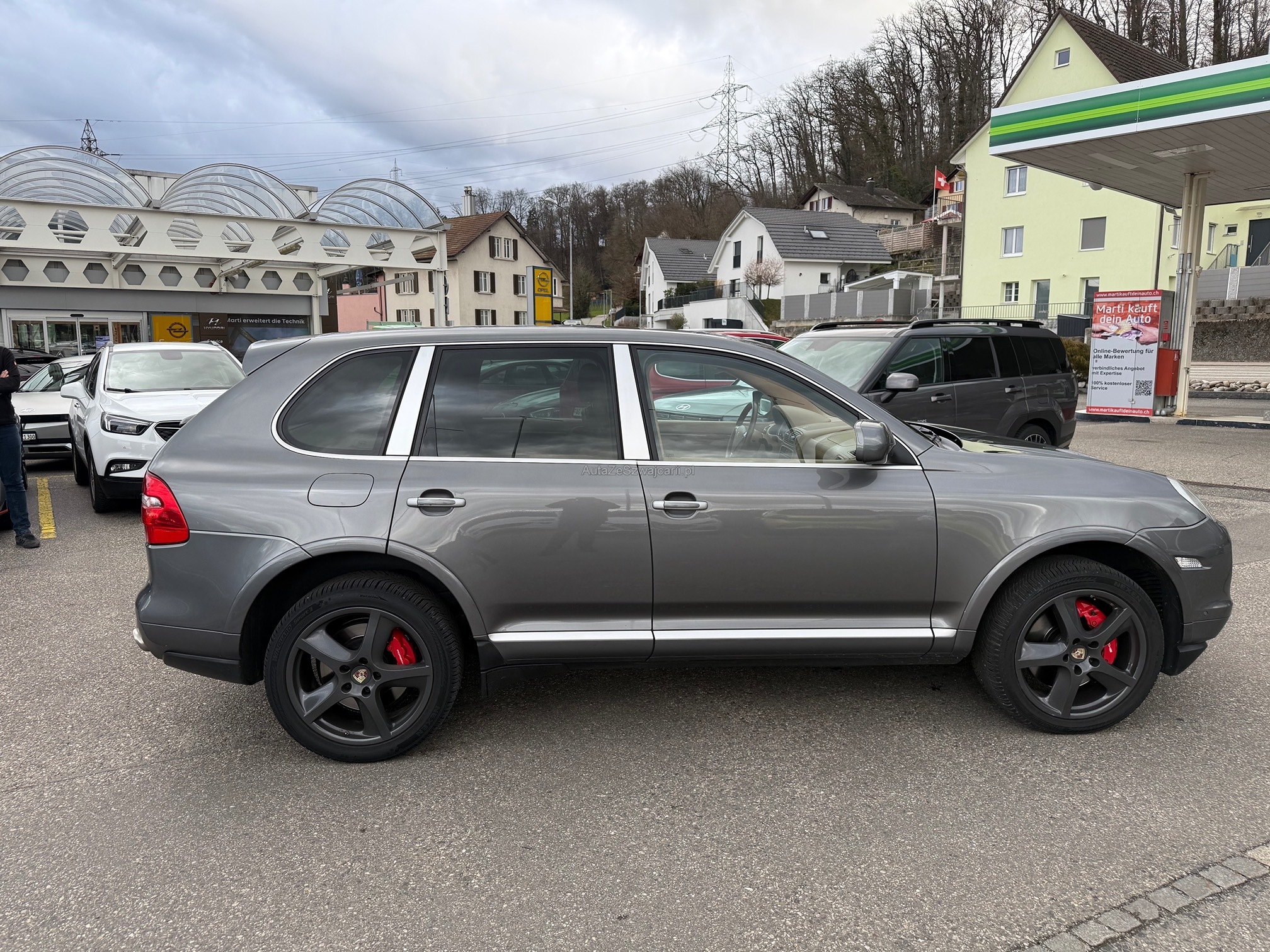 | Kommentar | Top gepflegter Porsche Cayenne Turbo Alle Optionen wie Luftfahrwerk, Klimaanlage, Tempomat, Schiebedach funktionieren einwandfrei Doppel DIN Radio mit DAB+ und android auto eingebaut Neue Winterreifen auf Original Porsche Felgen 21 Zoll Sommerfelgen ohne Reifen sind vorhanden Carosserie für Fahrzeugalter in tadellosem Zustand Scheinwerferwaschdüse vorne links fehlt noch, Original Ersatzteil ist vorhanden und muss nur noch lackiert und montiert werden Minimaler Oelverlust zwischen Motor und Getriebe, kann für MFK gewaschen werden Im Fz wurde ein Hund transportiert, der Kofferraum war innen vollverkleidet, daher keine Haare und riecht nicht nach Hund |