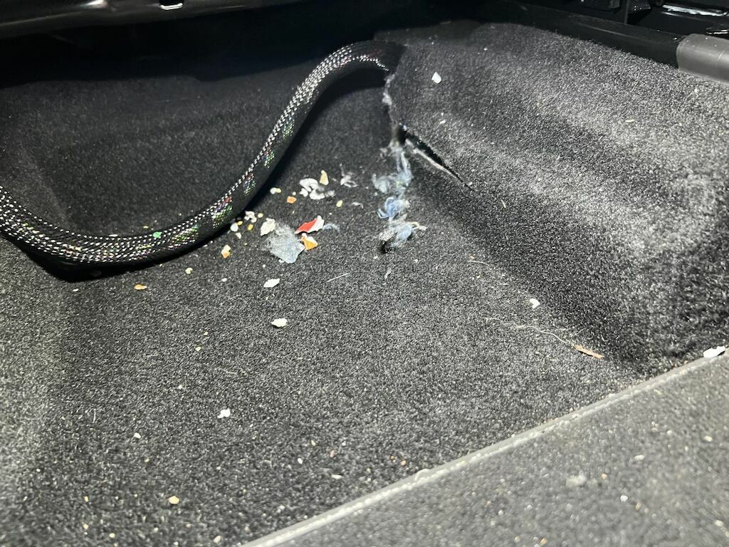 Dabei wurde die Entlüftungsklappe hinten rechts in der Seitenwand, der Kabelstrang im Innenraum, die Isolierung der Kofferraumabdeckung rechts, die Sitzbezüge der Rückbank hinten und der Teppich unterhalb des Fahrersitzes beschädigt. Weitere Beschädigungen im Innenraum sind nicht auszuschliessen!