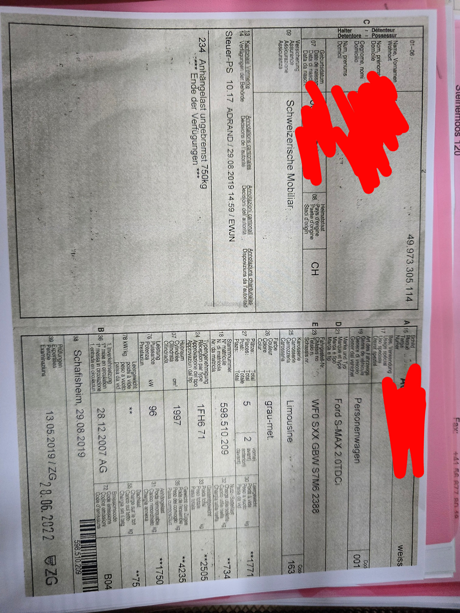 | Kommentar | Handbremse defekt, Zahnriemen fällig zum ersetzen, HL Delle |