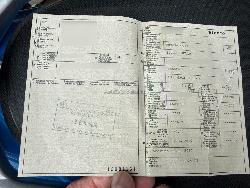 | Fahrzeugausweis | Vorhanden |