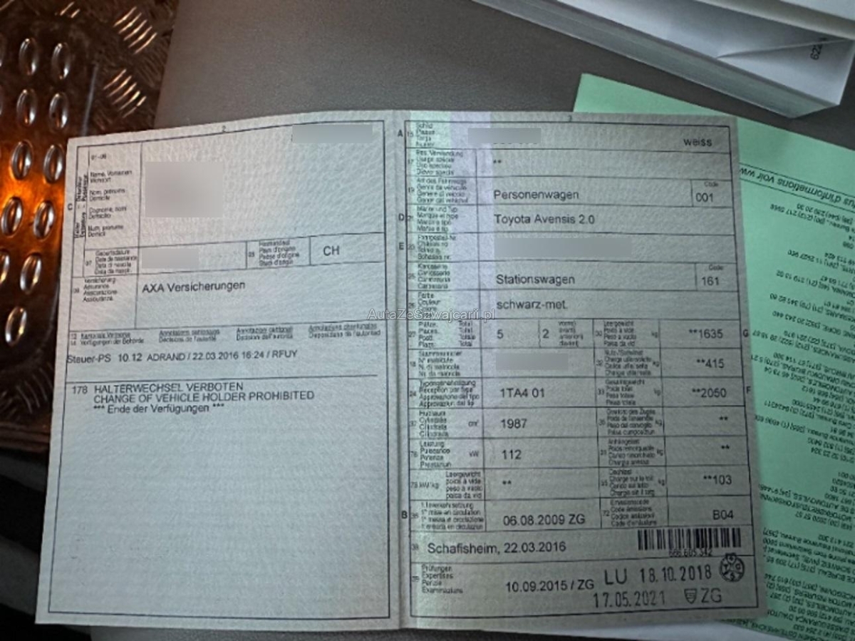 | Fahrzeugausweis | Vorhanden |