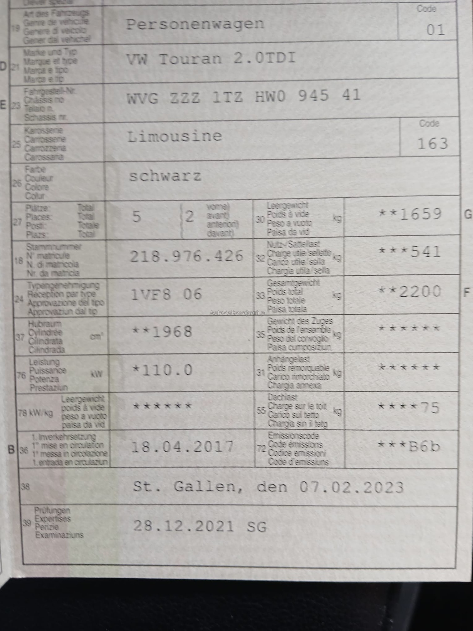 | Kommentar | Technisch nicht geprüft. Fahrzeug läuft und kann gefahren werden, Warnlampen leuchte keine. Hat 2 Schlüssel. Braucht innen eine gründliche Aufbereitung. Im Kofferraum war mal ein Hund hat Haare drin. Auto riecht aber nicht nach Hund. Hat an der Beifahrertüre Rost (Siehe Foto ) Winterbereifung vorhanden. Fahrzeug muss innert 7 Tage abgeholt werden. ( Banküberweisung ) |