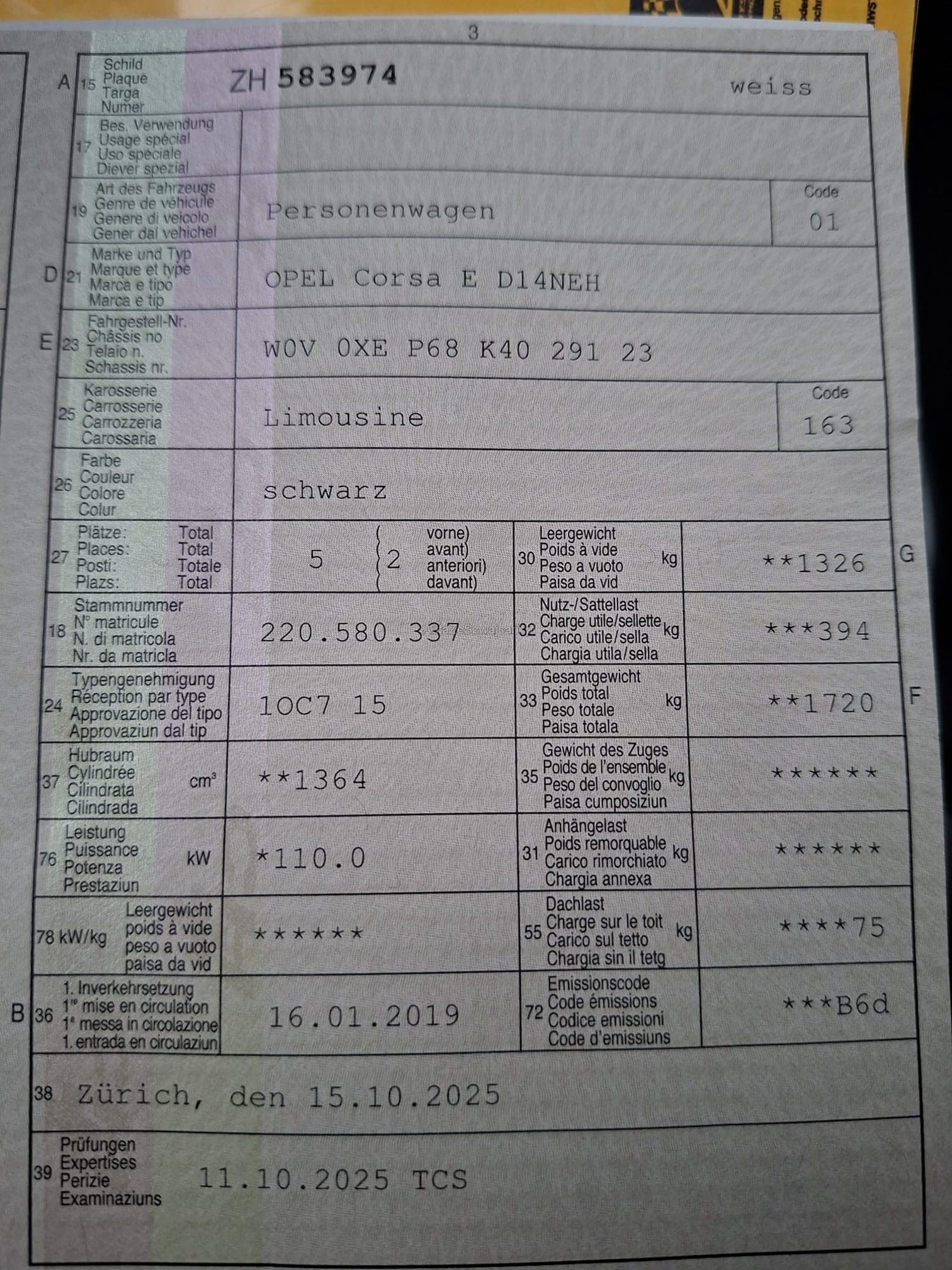 OPEL Corsa E D14NEH