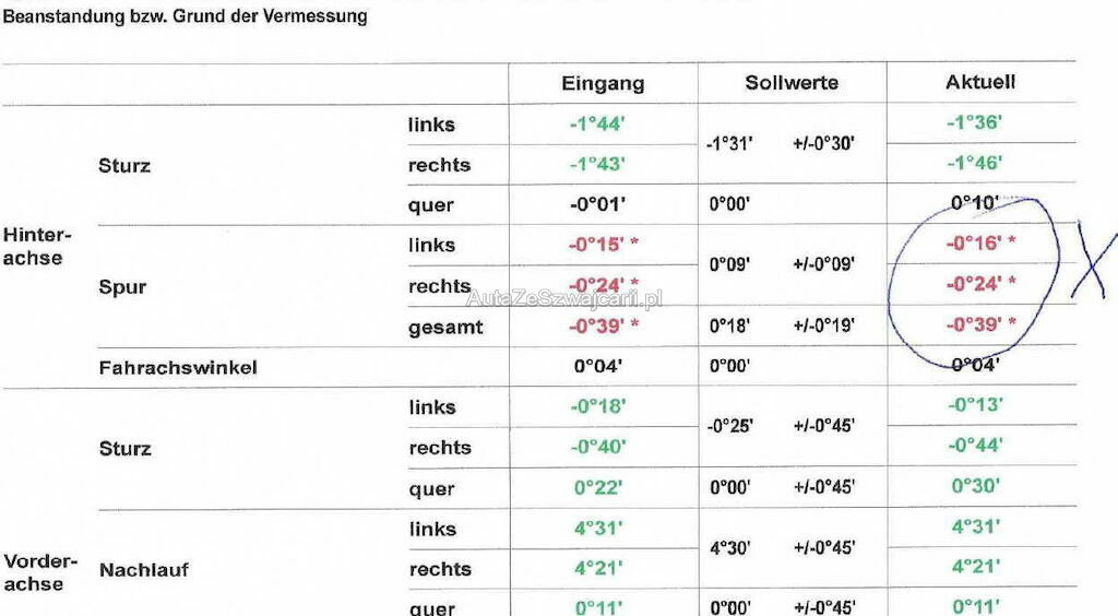 | Information | Hinterachse gemäss Protokol leicht ausserhalb der Toleranz 8 fach Bereift |