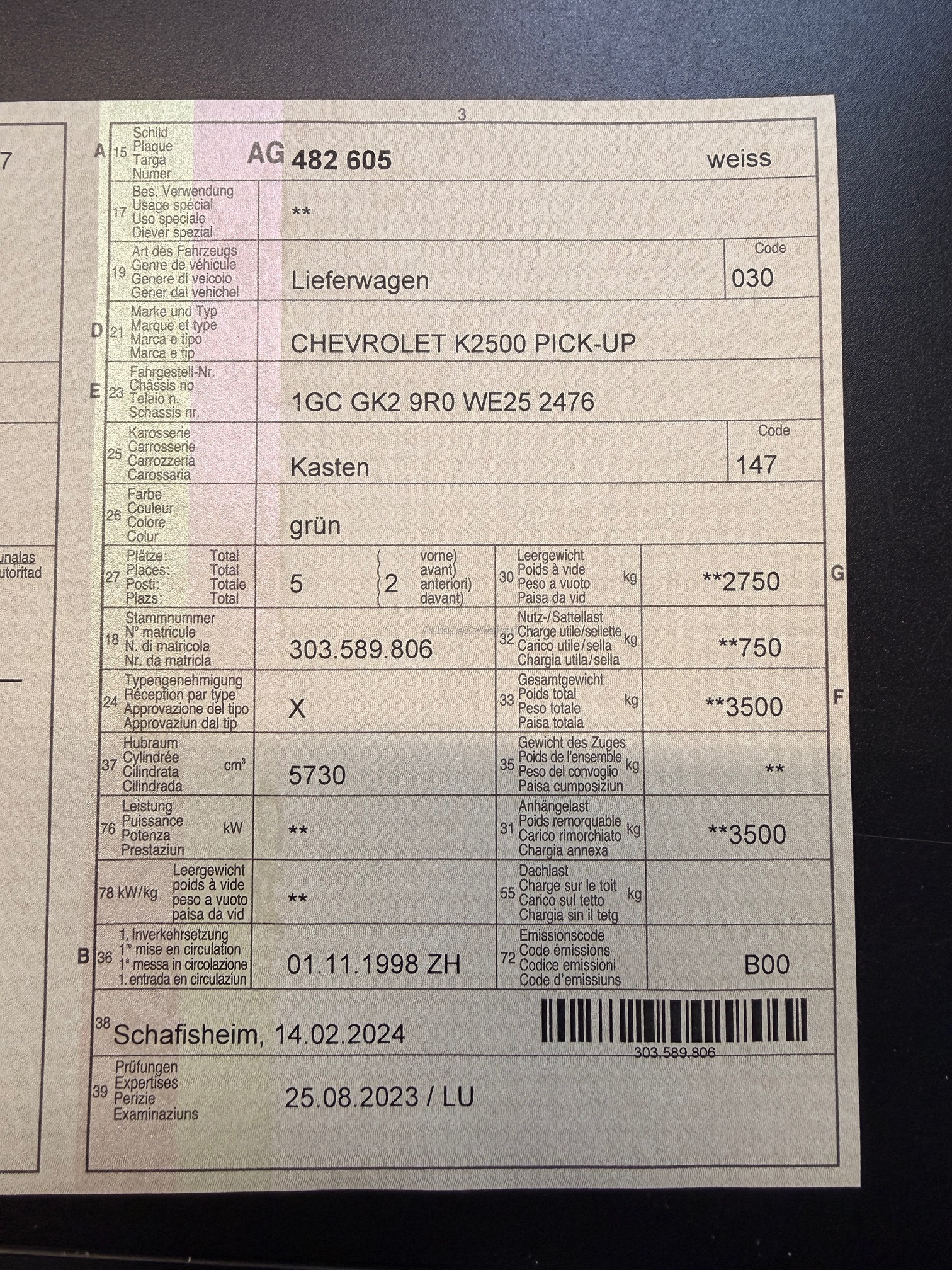 | Letzte Inspektion | 1998-11-01 |