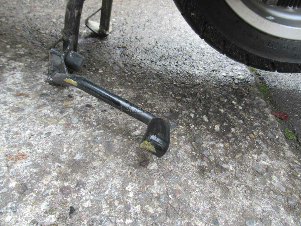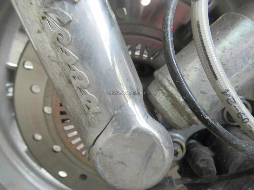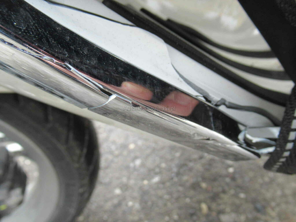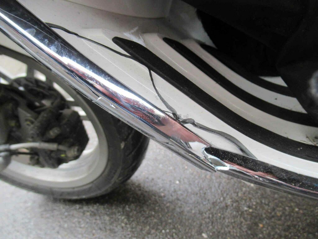 Schaden links, Kotflügel VL und HL beschädigt und Trittbrett. Lenker, Spiegel und Bremse.
