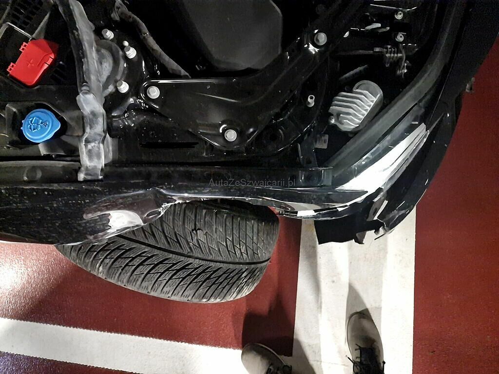 Die Front VR ist stark eingedrückt. Die Vorderachse VR wurde abgerissen. Die Airbag sowie die Überschlagbügel sind ausgelöst.