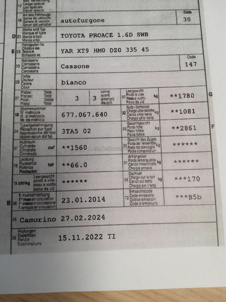 | Typ | Proace 1.6D SWB |