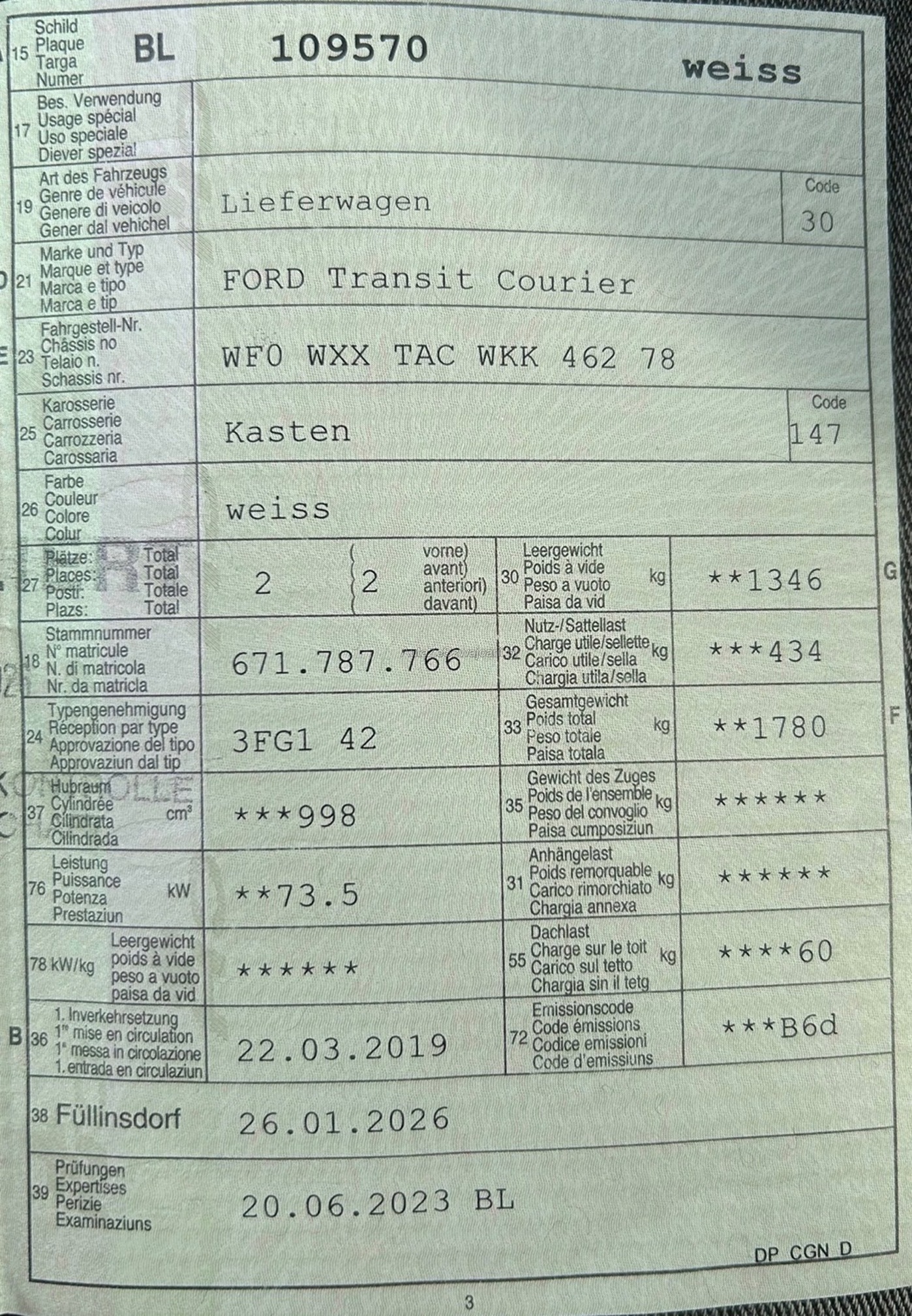 | Kommentar | Macht sehr saubere Eindruck Karoserie hat Gebrauchtspuren wie auf dem Bilder ersichtlich ist Am Fahrzeug wurde kein Werkstatttest gemacht (Für sichtbare oder nicht sichtbare Mängel wird nicht gehaftet). Wir testen & kontrollieren nicht alle Funktionen des Fahrzeugs. Das Risiko liegt somit vollumfänglich beim Käufer. Ab Platz ohne Garantie, Wandelung und Minderung werden wegbedungen. Nach erteilte Zuschlag muss Fahrzeug innerhalb 4 Arbeitstage abgeholt und Bar bezahlt werden. Sonst wird Parkplatz CHF 30.- / Tag verrechnet |