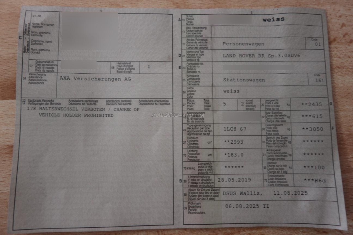 | Fahrzeugausweis | Vorhanden |