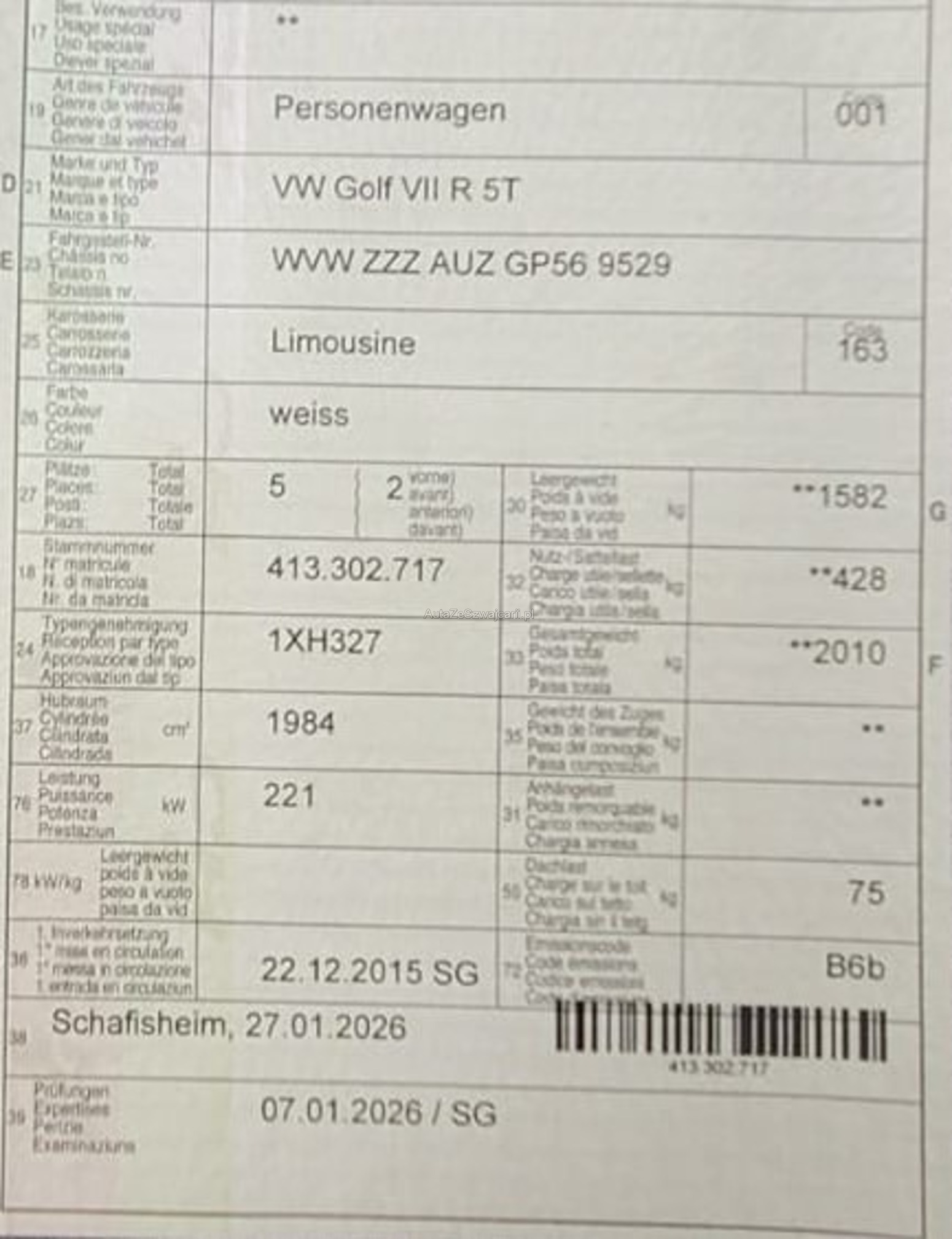 | Kommentar | Swiss HighClass Garantie bis 26.01.2027 Stossstange hinten siehe Fotos Fahrzeugausstattung siehe Anlage Garantie siehe Anlage Am Fahrzeug wurde keine vollumfängliche Prüfung der mechanischen Teile und der Carrosserie durchgeführt! Das Risiko liegt somit vollumfänglich beim Käufer. Um Missverständnisse zu vermeiden kann das Fahrzeug auf Voranmeldung besichtigt & getestet werden. Wird davon bewusst kein Gebrauch gemacht, liegt die Verantwortung beim Käufer. Nach Zuschlag, keine Nachverhandlungen möglich. Ab Platz ohne Garantie, Wandelung und Minderung werden wegbedungen |