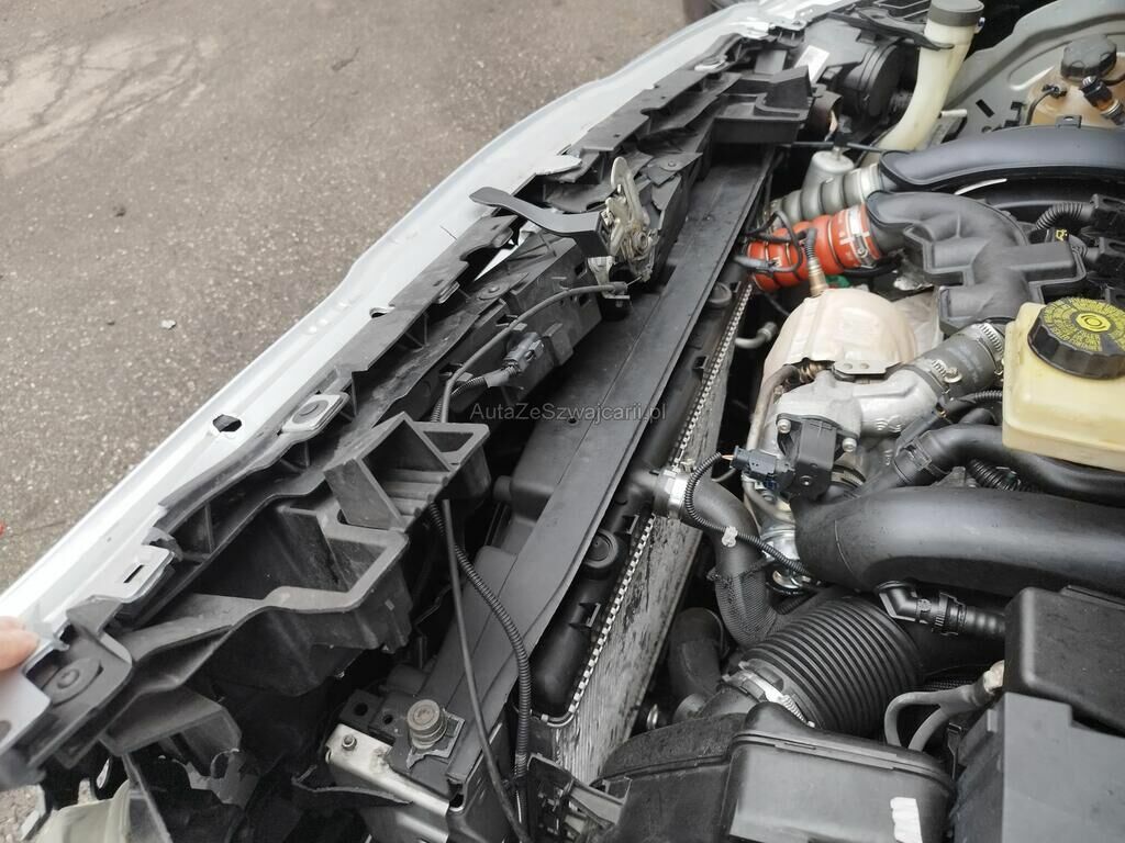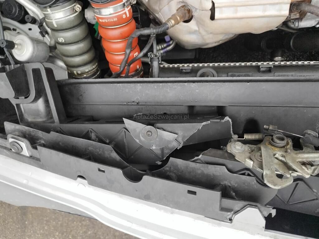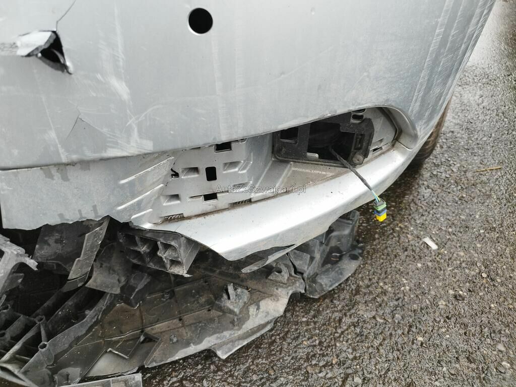Die Stossstange vorne ist gerissen, diverse Anbauteile sind ausgerissen, der Scheinwerfer vorne links ist gerissen, die Motorhaube ist deformiert, der Kotflügel vorne links ist gerissen, die Felge vorne links ist deformiert.