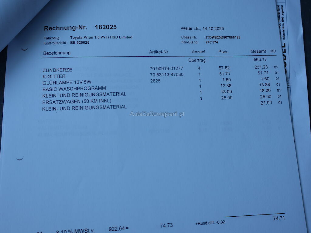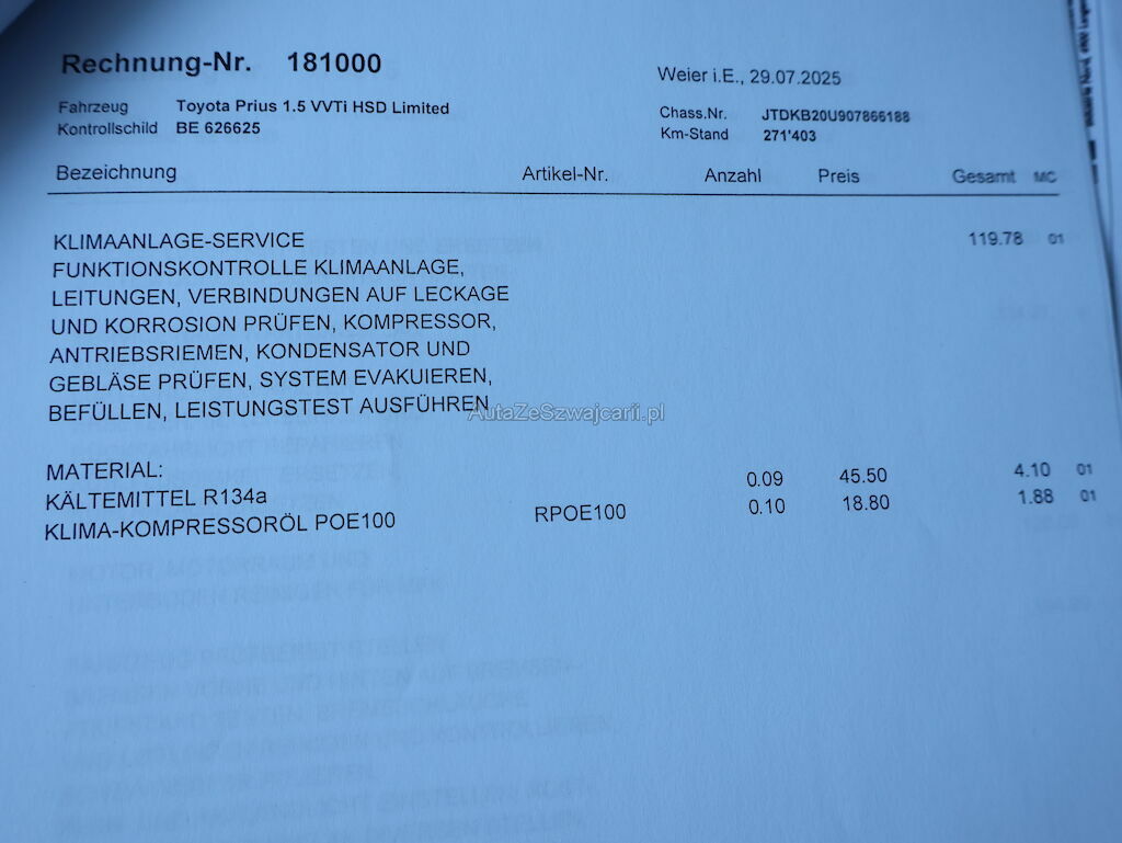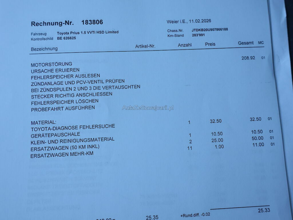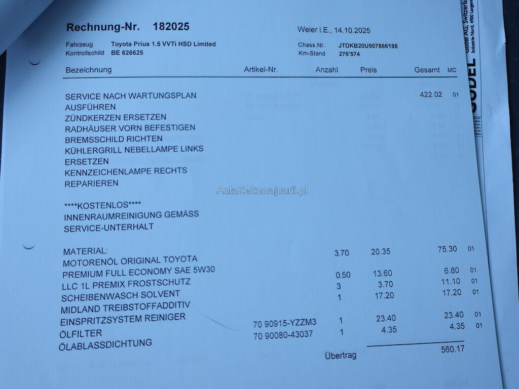 | Reparaturkosten | 0.00 CHF |