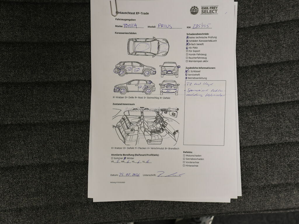 Keine technische Prüfung (Werkstatttest) vorgenommen