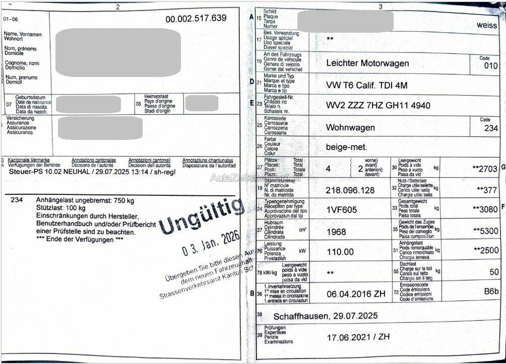 | Typ | T6 California 2.0 TDI Ocean 4Motion DSG |