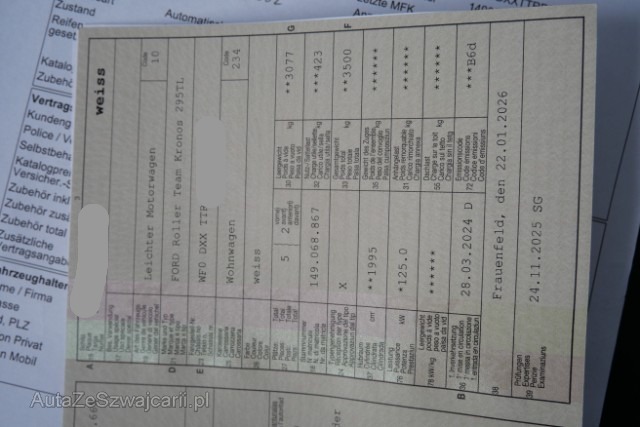 | Condition_and_Equipment | Zustand Fahrzeug ist fahrbar. Fahrzeug ist rollbar. Weitere wichtige Hinweise sehr gepflegter Allgemeinzustand --- Heck Schlussleuchten beschädigt. Fahrradträger hinten beschädigt. Aufbau Seite rechts eingedrückt. Seite rechts hat ein Loch. Heck eingedrückt. Heck hat ein Loch. Innenwohnraum Innenwohnraum gepflegt. Inneneinrichtung gut erhalten. --- Serienaustattung Airbag Fahrerseite Aussenspiegel elektrisch verstellbar und beheizbar Zentralverriegelung mit Fernbedienung Lenkrad verstellbar Heizbare Frontscheibe Seitenschutzleisten Nebelscheinwerfer vorne ABS + EBD Elektr. Bremskraftverteilung Klimaanlage/ Pollenfilter Geschwindigkeitsregelanlage Garantie 3 Jahre/ 100'000 km Dieselpartikelfilter Heckscheibe beheizbar Generator verstärkt Reifen-Reparatur-Kit Radzierblenden ESP mit TCS und Berganfahrassistent Stop + Start System Keine Gewähr auf die Angaben der Serienausstattungen Stahlfelgen 16" Pack Sitz 13 MyKey Audiosystem Achslasterhöhung vorn auf 1850 kg Fahrspur-Assistent mit Müdigkeitswarner/ Fernlicht-Assistent Fahrspur-Assistent/ Fahrspurhalte-Assistent Notruf-Assistent Notbrems-Assistent aktiv Treibstofftank 70 Liter Audiosystem mit 12" Multifunktionsdisplay SYNC4 Pack Technologie 8 Sonstige Ausstattung und Zubehör Wohnmobilumbau gemäss Versicherungssumme |