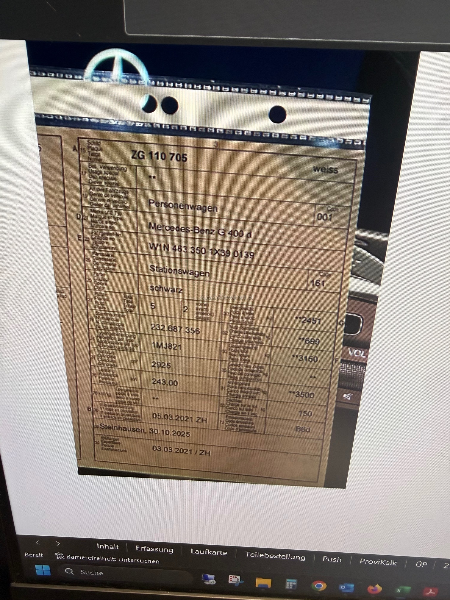 | Kommentar | Fahrzeug hat eine Steinschutzfolie montiert. Steinschlag auf Motorhaube evtl. nur auf Folie |