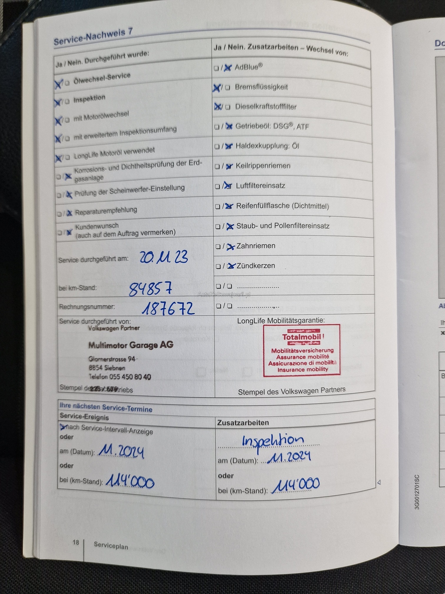 | Kommentar | - Service frisch durchgeführt - Aussen und Innen Gebrauchsspuren gemäss Fotos - Fahrzeug noch im Kundenbesitz - Kein Eintauschtest / Diagnose durchgeführt - keine Nachverhandlung und / oder Nachwährschaft |