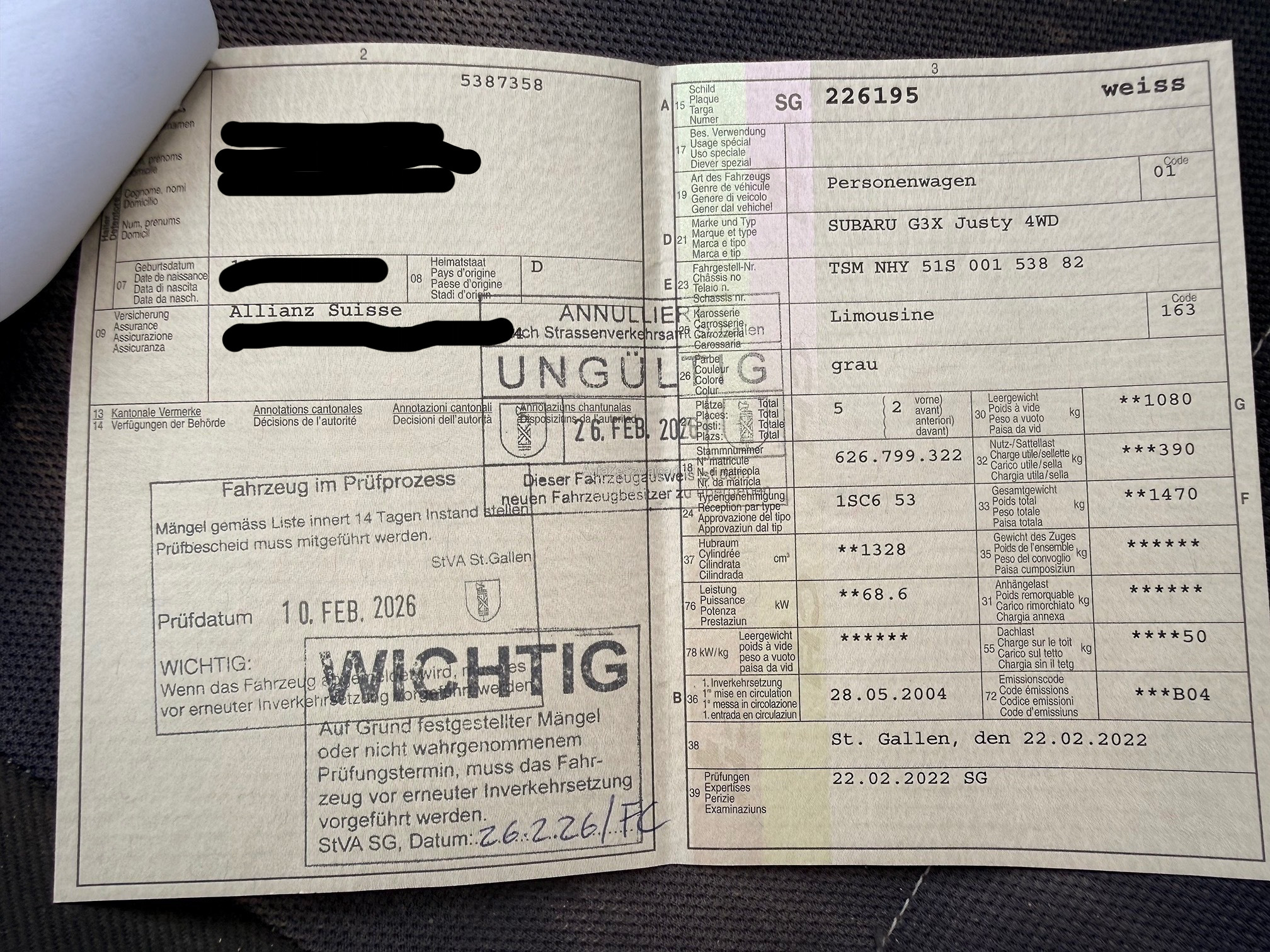 | Kommentar | Siehe Mängelliste MFK! Keine Werkstattprüfung durch uns. Fahrzeug ist an allen Seiten u.a. Leicht beschädigt. Keine Wandlung. Kein Preisnachverhandlung. Ab Platz. Keine Garante. Keine Gewährleistung |