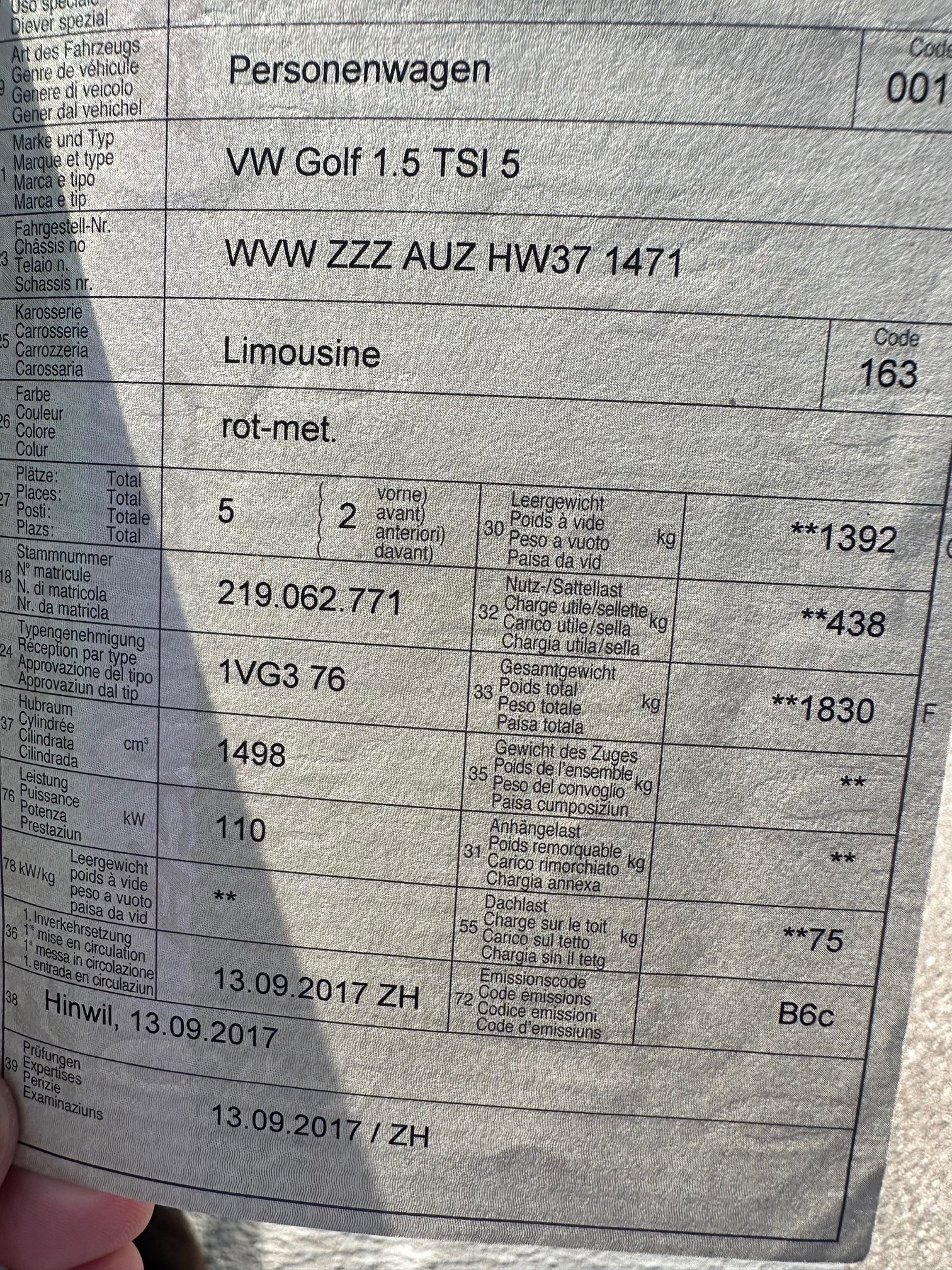 | VIN | WVWXXX |