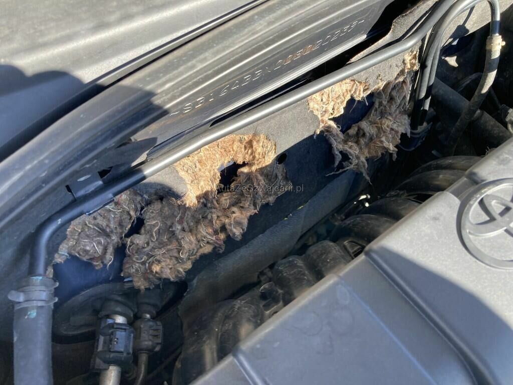 Autre dommage : garniture auvent compartiment moteur rongée par les fouines