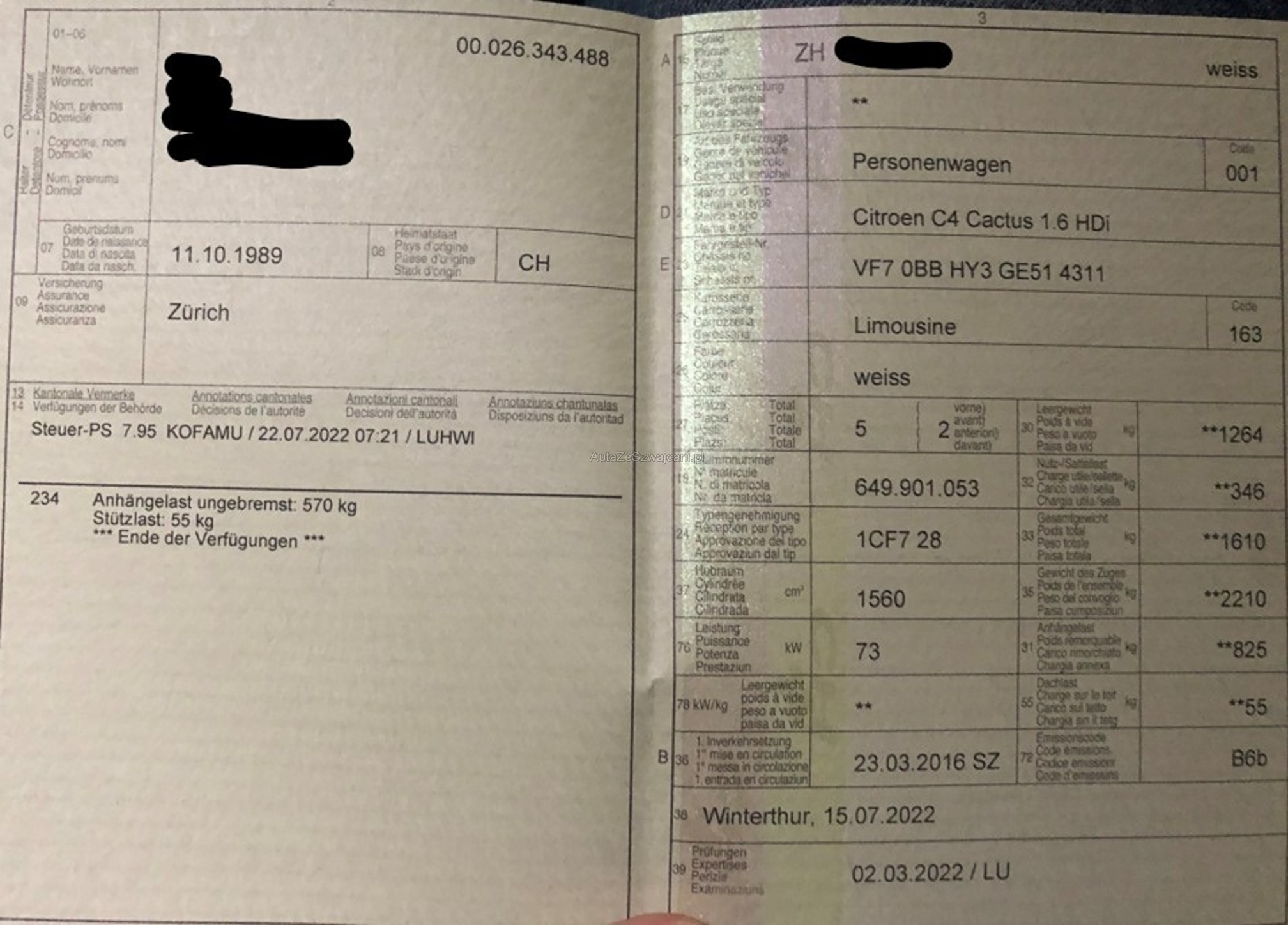 | Kommentar | + hintere Bremsen komplett neu - Bremsbeläge und Trommeln + Partikelfilter-Messung OK + es sind Allwetter-Reifen montiert + Anhängekupplung wegnehmbar - alle Scheibenwischer-Blätter sind zu ersetzen - Querlenker vorne links und vorne rechts rissig - grosser Service inkl. Zahnriemen, Wasserpumpe fällig keine vollständige Prüfung, Aufzählung nicht vollständig ABHOLUNG NACH ZUSCHLAG / VERFÜGBARKEITS-DATUM INNERT 7 TAGEN ERFORDERLICH, DANACH FR. 15.-/TAG STANDPLATZ-GEBÜHREN BARZAHLUNG BEI ABHOLUNG / MONTAG-FREITAG 08:00-12:00 UND 13:30-17:00 IM KUNDENAUFTRAG ZU VERKAUFEN, KEINE MWST VORSTEUER AUSWEISBAR. |
