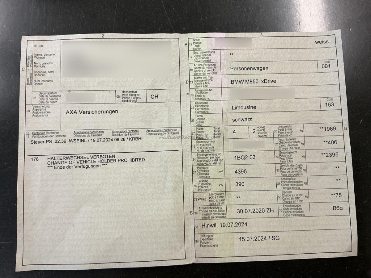 | Fahrzeugausweis | Vorhanden |