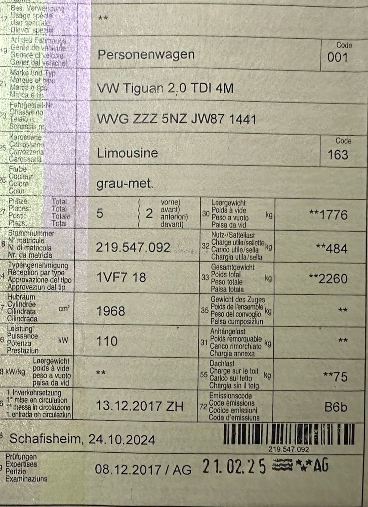 | Kommentar | Gemäss Kunden gut gepflegt Div. Kratzer und Beulen Am Fahrzeug wurde kein Werkstatttest gemacht (Für sichtbare oder nicht sichtbare Mängel wird nicht gehaftet). Wir testen & kontrollieren nicht alle Funktionen vom Fahrzeug. Das Risiko liegt somit vollumfänglich beim Käufer. |