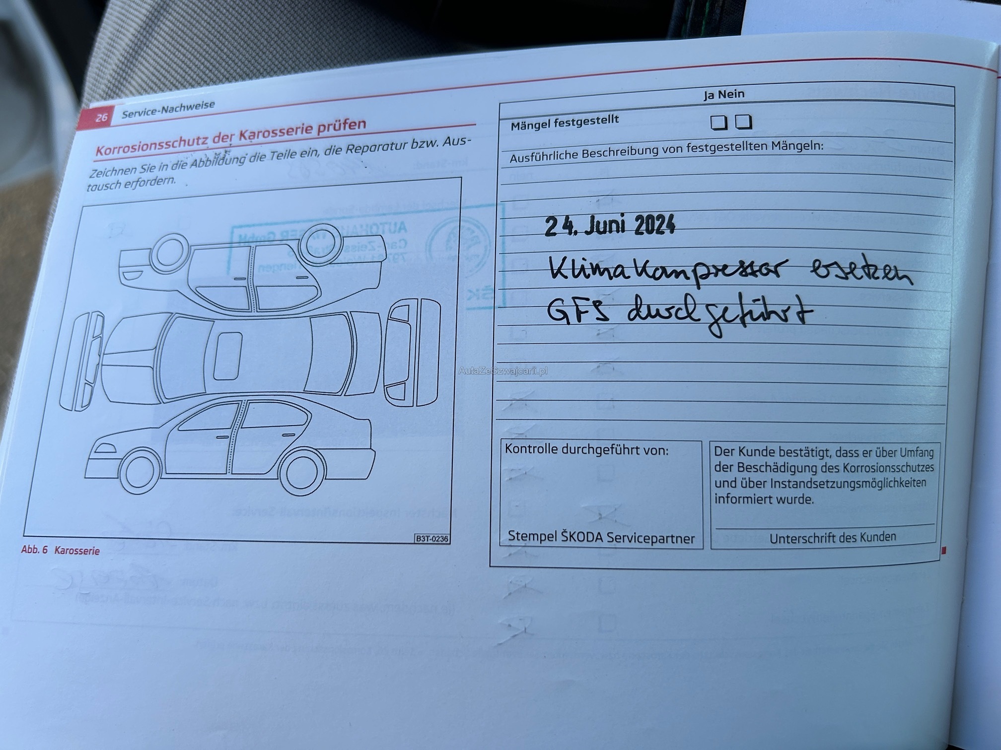 | Kommentar | Es wurde kein Werkstatt-Test durchgeführt. Fahrzeug sieht gepflegt aus. |