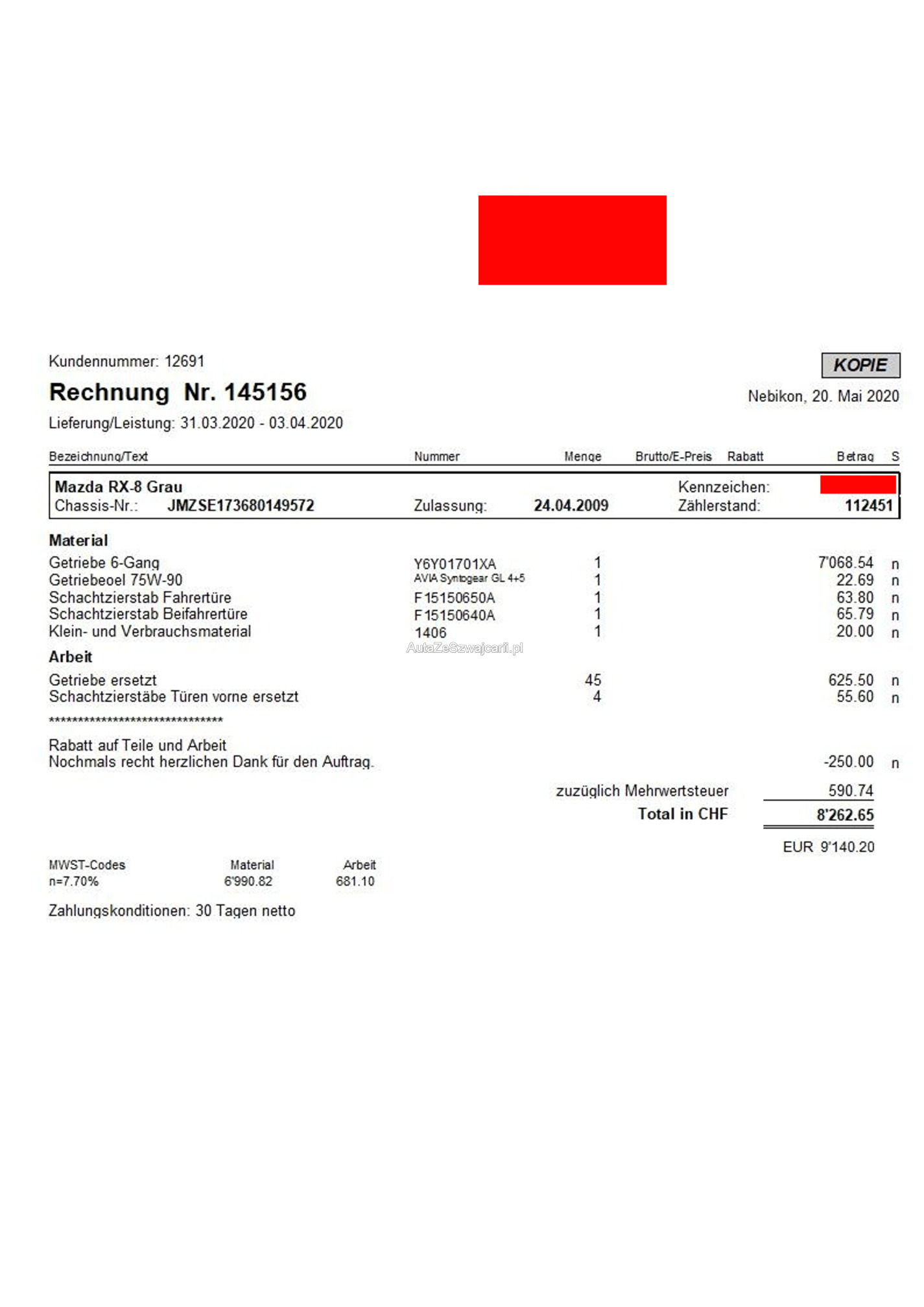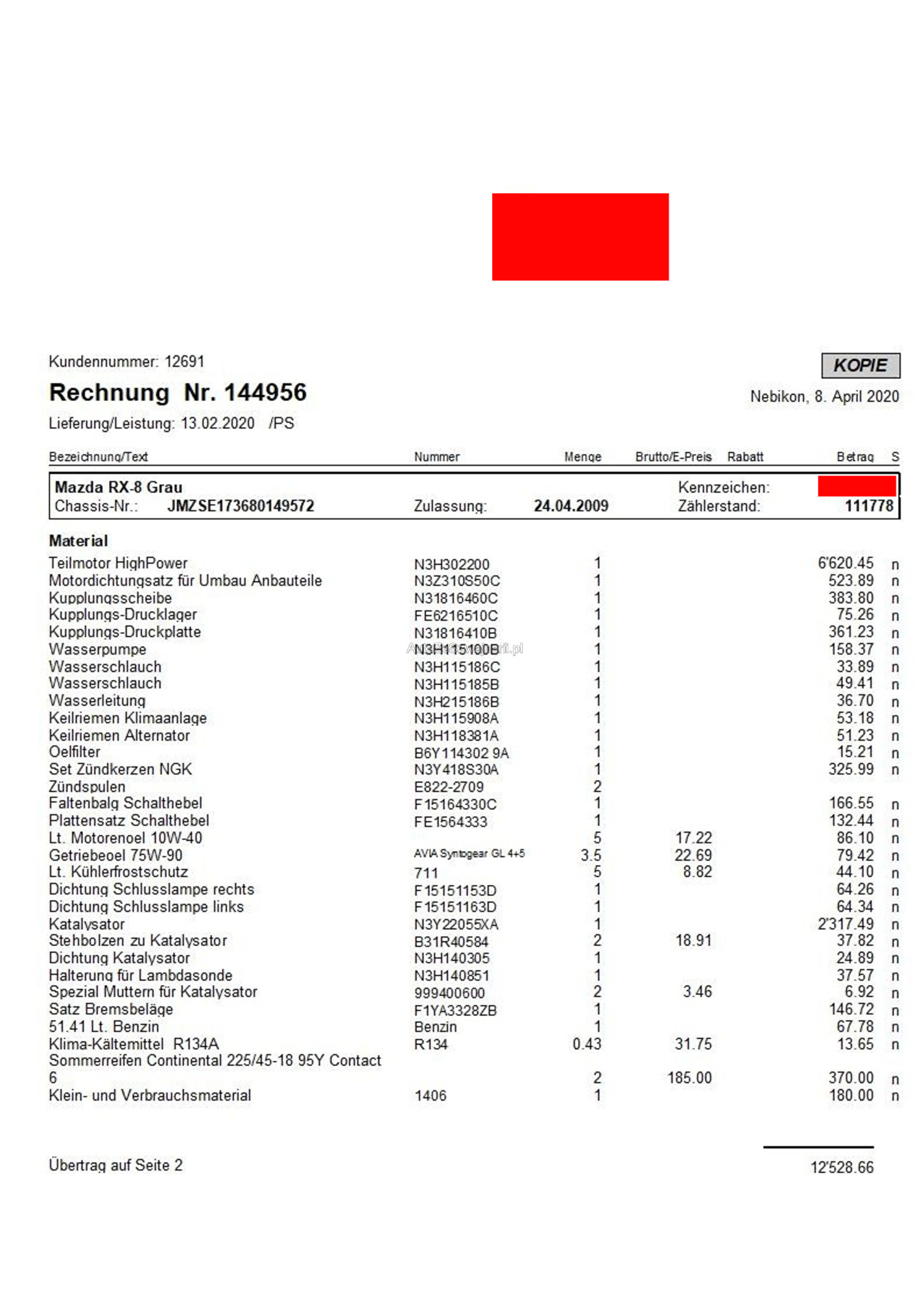 | Kommentar | Auspuff wurde durch Fehlzündung sehr heiss. Der Bodenteppich ist an zwei stellen geschmolzen ( siehe Bilder) Bei dem Fahrzeug wurde am 13.02.2020 der Motor komplett ersetzt. Das Getriebe wurde am 31.03.2020 ebenfalls komplett ersetzt. Mit Pioneer Radio und Shark Antenne ausgestattet. |