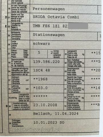 | Condition_and_Equipment | Bereifung Fahrzeug wird mit Winterräder abgegeben. Kategorie Das Fahrzeug wird vom Besitzer noch benutzt. --- Links Linke Seite beschädigt. Sonstige Schäden Div.Carrosserie Teile sind leicht beschädigt. Div. Roststellen am Fahrzeug. Lackierung matt (stumpf, beschädigt). --- Serienaustattung Airbag Fahrer und Beifahrerseite Elektronische Wegfahrsperre Sitzheizung vorne Zentralverriegelung Elektrische Fensterheber vorne + hinten ASR Antriebsschlupfregelung Servolenkung Fernbedienung für Zentralverriegelung ESP Elektronisches Stabilitätsprogramm Nebelscheinwerfer Kopfairbag Staub- und Pollenfilter Lenkrad verstellbar ABS und EBV Elektr. Bremskraftverteilung Vorbereitung für Radioeinbau Mittelarmlehne hinten mit Durchladesystem Reifendruck-Kontrollsystem RDK Deaktivierung Beifahrerairbag Fussmatten vorne und hinten Xenon-Scheinwerfer inkl. Waschanlage CD-Wechsler im Kofferraum Innenspiegel automatisch abblendbar/ Regensensor Heckscheibenwischer inkl. Waschanlage Rücksitzbank und Lehne geteilt umklappbar Tagesfahrlichtschaltung Seitenschutzleisten Ablagefach unter Beifahrersitz Aktive Kopfstützen vorne 3 Kopfstützen hinten Reserve-Notrad Leichtmetallfelgen 17" Zwei Zonen-Klimaautomatik Scheinwerfer Reinigungsanlage Metallic-/ Perleffekt-Lackierung Park-Distanz-Sensor hinten Isofix-Vorbereitung für 2 Kindersitze hinten Wärmeschutzverglasung Seitenairbags ESP/ Hill Holder Kühlfach in Mittelkonsole Multifunktionsanzeige Maxi-DOT Dieselpartikelfilter Elektrisch verstellbarer Fahrersitz mit Memory Netzset im Kofferraum Brillenfach Aussenspiegel elektr. verstell. u. heizbar mit Memory Vorbereitung für Autotelefon/ Bluetooth Interieur in Leder Vordersitze höhenverstellbar mit Lendenwirbelstützen Geschwindigkeitsregelanlage Schirmfach in Gepäckraumabdeckung DVD-Navigationssystem mit Farbbildschirm Audio-Anschluss in der Jumbo-Box El. Fensterheber vorne + Aussensp. el. verst. und heizbar Lichtassistentsystem/ Innenspiegel aut. abbl./ Regensensor Multifunktionslenkrad für Radio u. Tel./ Kleines Lederpaket Keine Gewähr auf die Angaben der Serienausstattungen Sonderausstattung Netztrennwand Kleine Telefon-Vorbereitung |