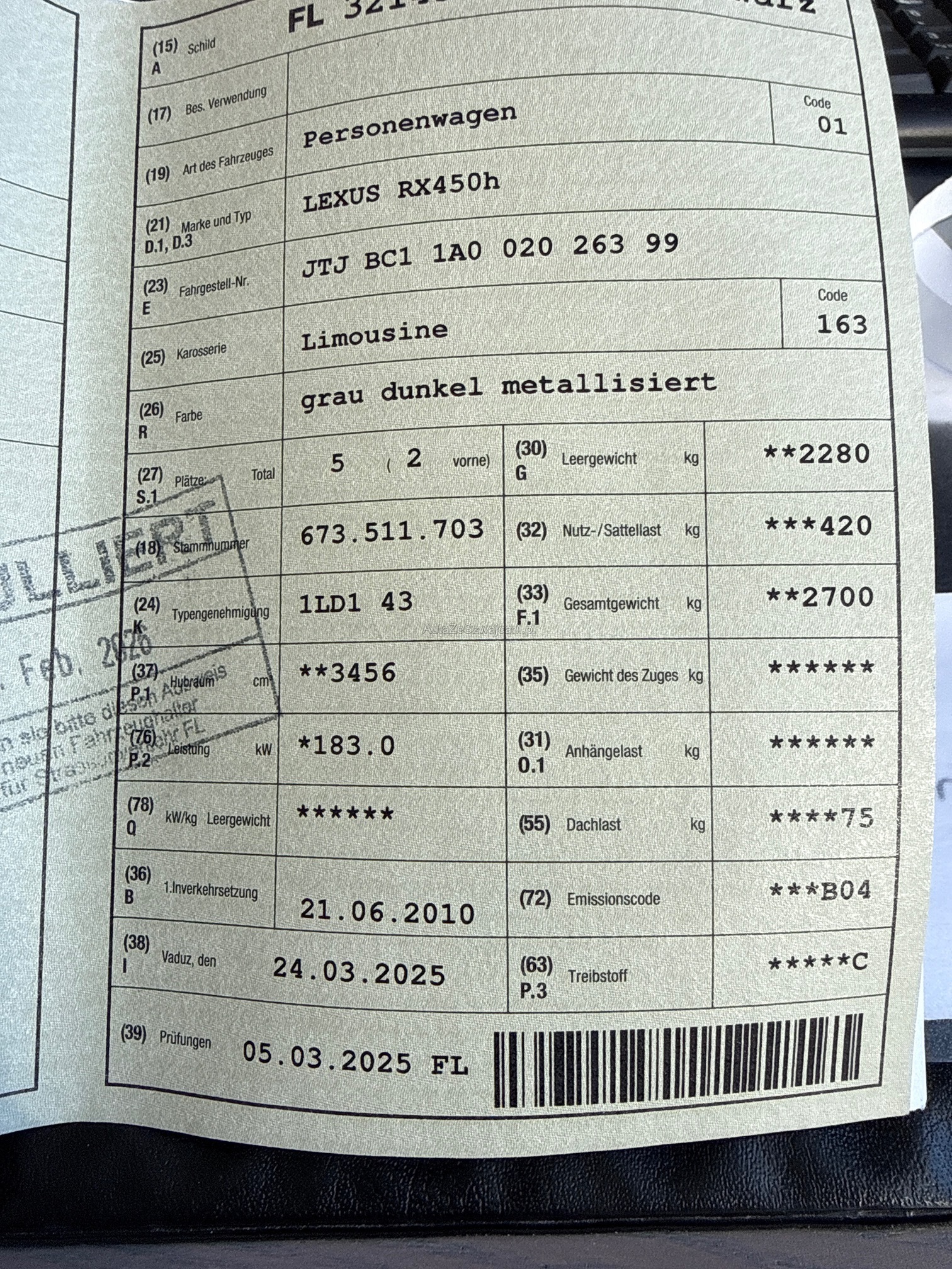 | Kommentar | Fahrzeug wurde kein Werkstatttest gemacht (Für sichtbare oder nicht sichtbare Mängel wird nicht gehaftet). Wir testen und prüfen nicht alle Funktionen vom Fahrzeug. Das Risiko liegt somit vollumfänglich beim Käufer. Nach erhalt des Zuschlags, gibt es keine Nachverhandlung, auch wenn nicht deklarierte Mängel zum Vorschein kommen. Ab Platz ohne Garantie oder Gewährleistung, Wandelung und Minderung werden wegbedungen. |